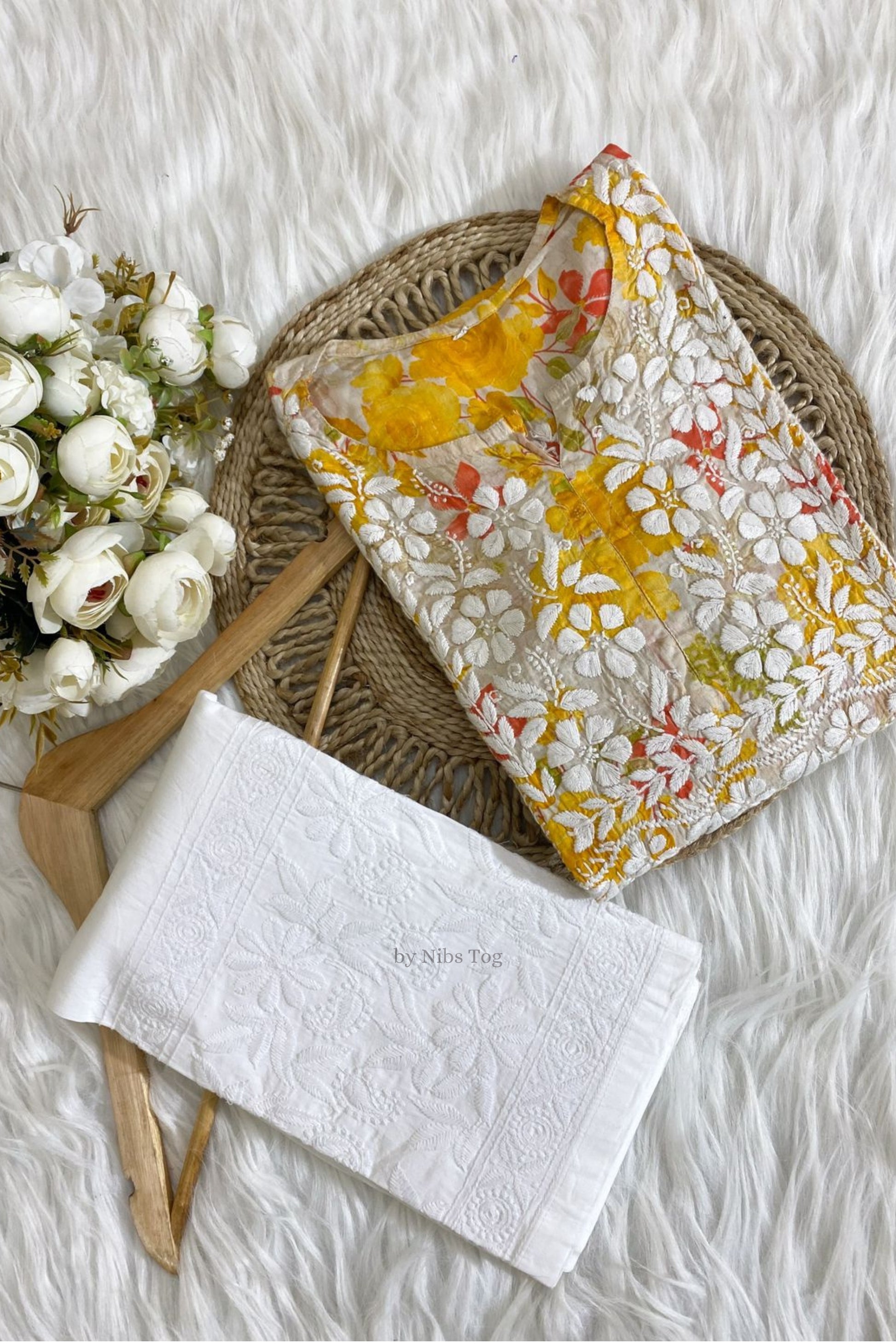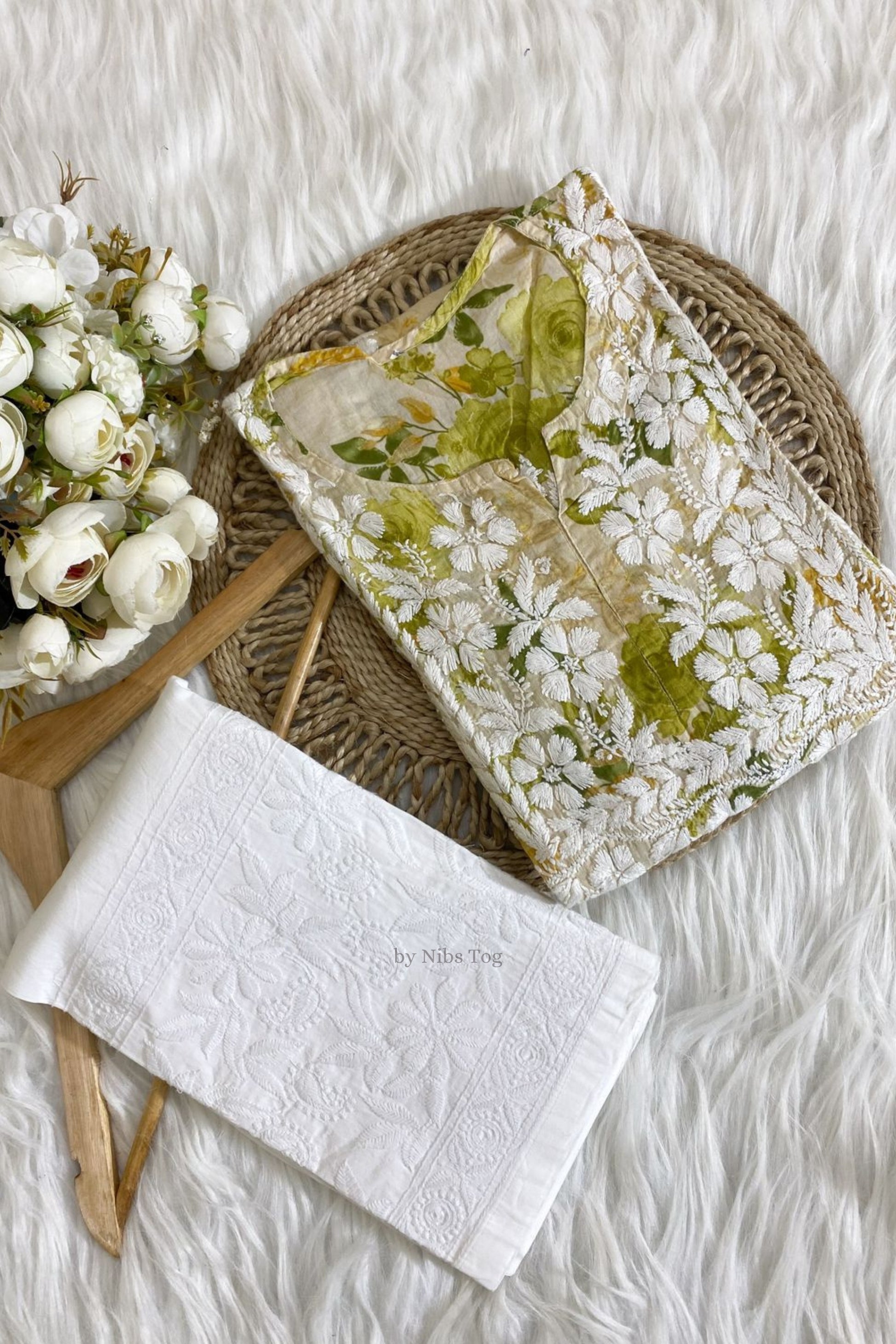 Discover timeless elegance with our Printed Mulmul Cotton Chikankari Kurta Pant Set, a perfect blend of traditional craftsmanship and contemporary style. Hand-embroidered with intricate Chikankari patterns, this outfit is designed for comfort and elegance, making it a must-have for every wardrobe.
