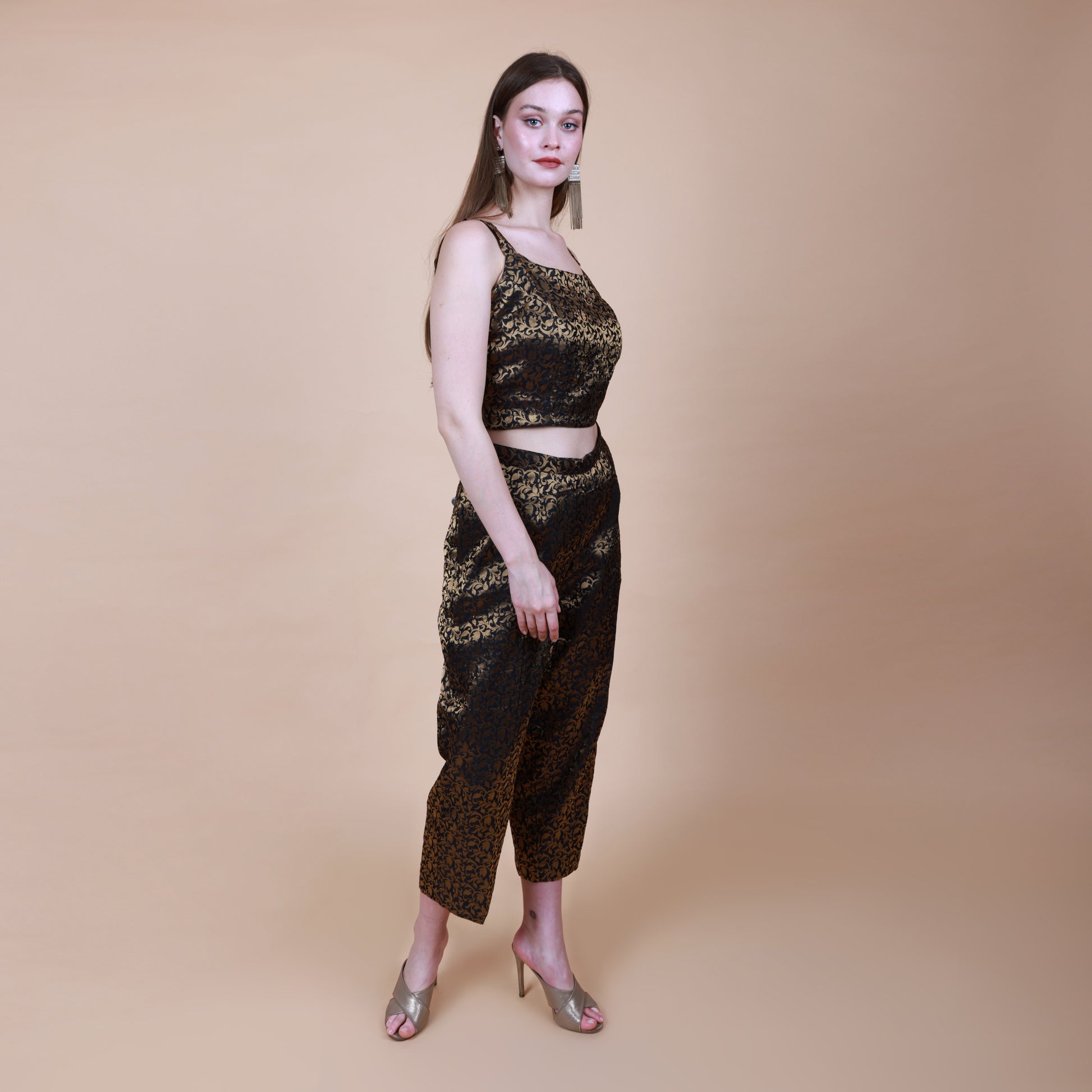 Black and Gold Silk Brocade Coord Set