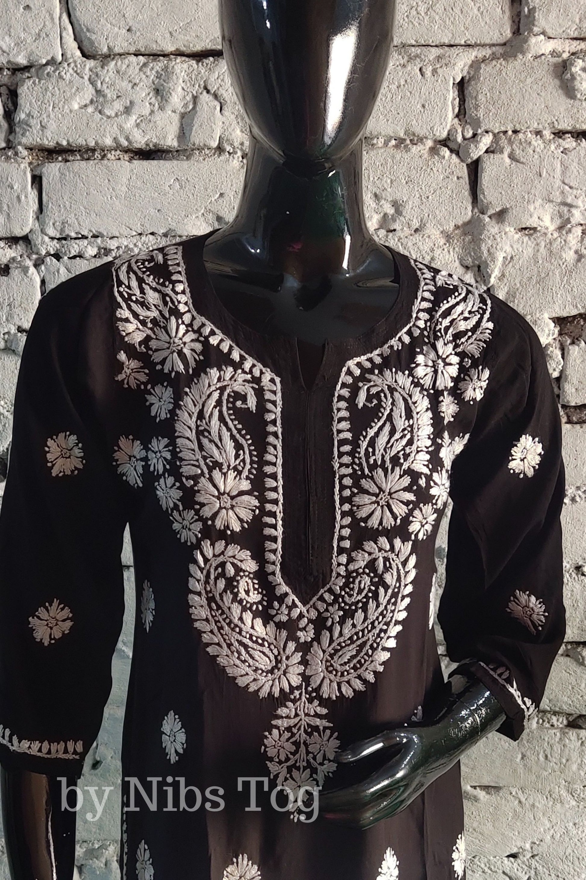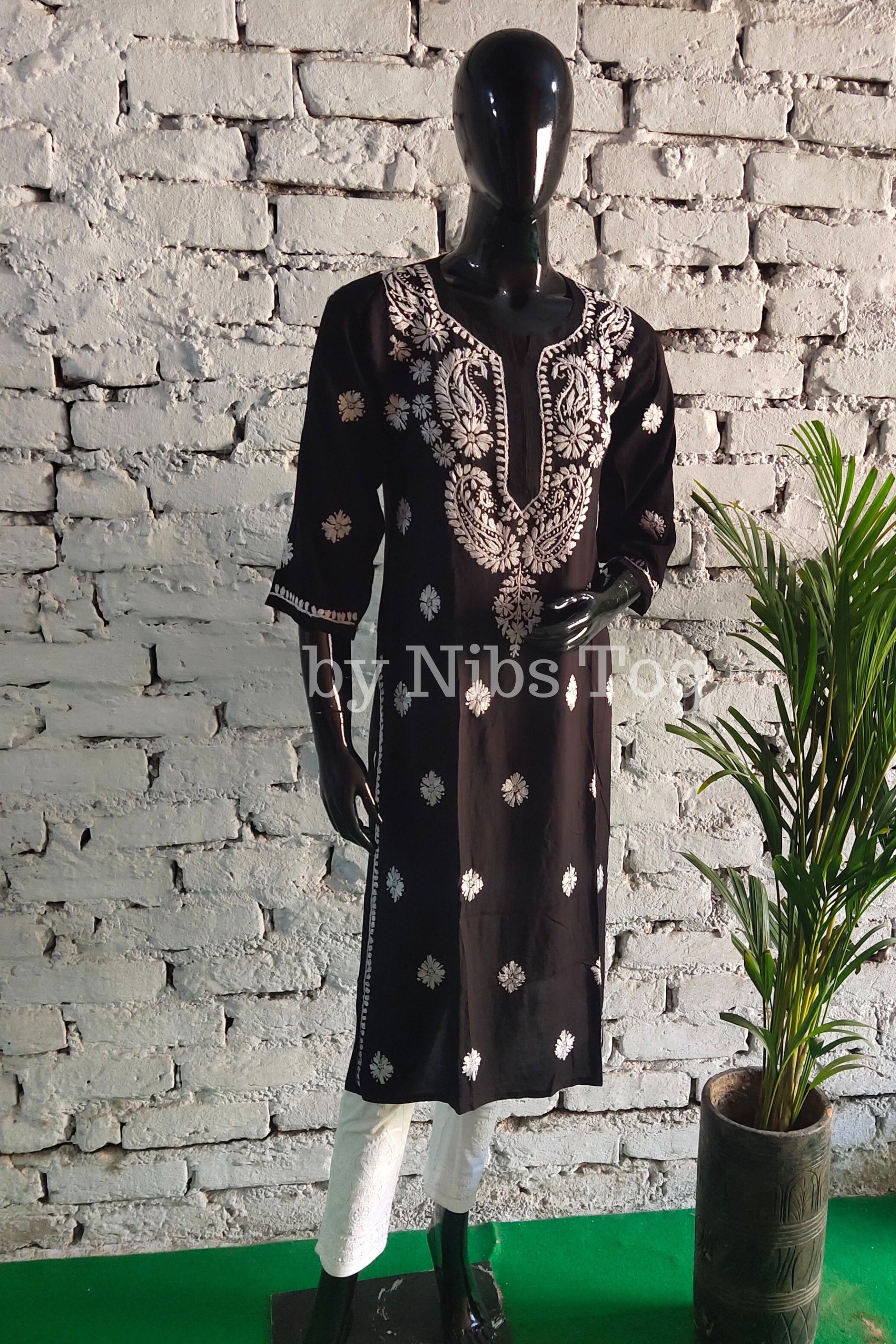 Don't miss the opportunity to own this exceptional piece. Order your Black Long Straight Modal Cotton Chikankari Kurta for Women now and step into a world of timeless beauty and grace. Embrace your unique style and make a statement like never before.