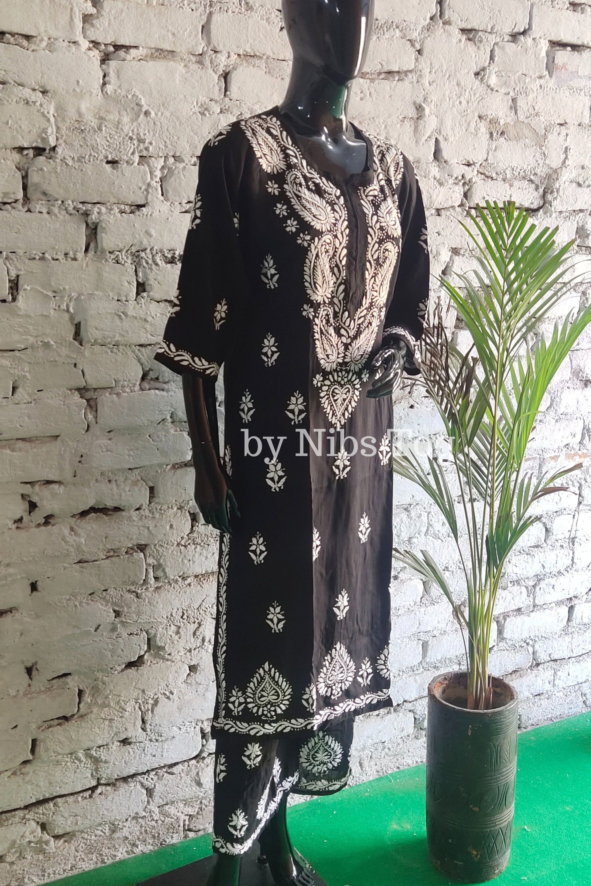 Nibs Tog Black Modal Cotton Chikankari Kurta Palazzo Set for Women