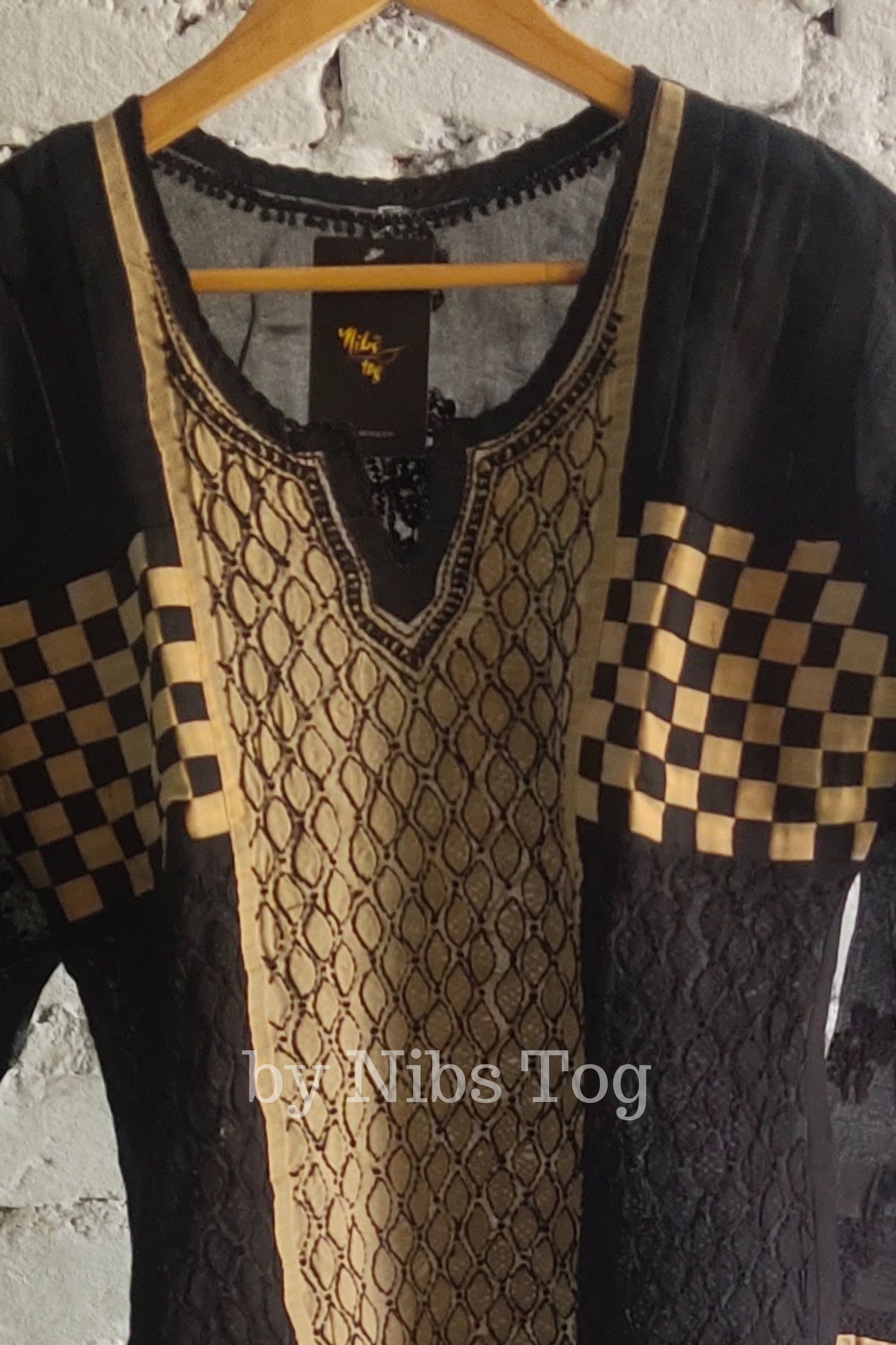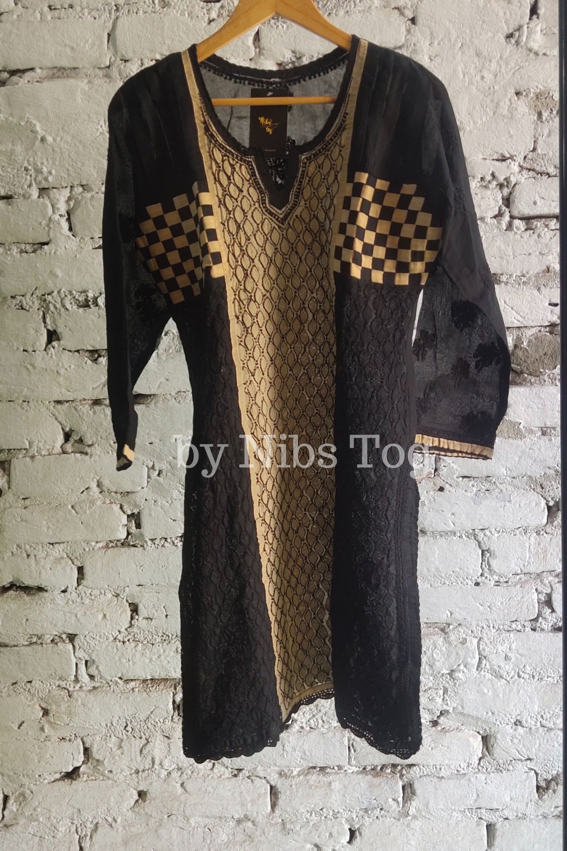 Nibs Tog Black Pure Cotton Chikankari Kurta Knee Length Large