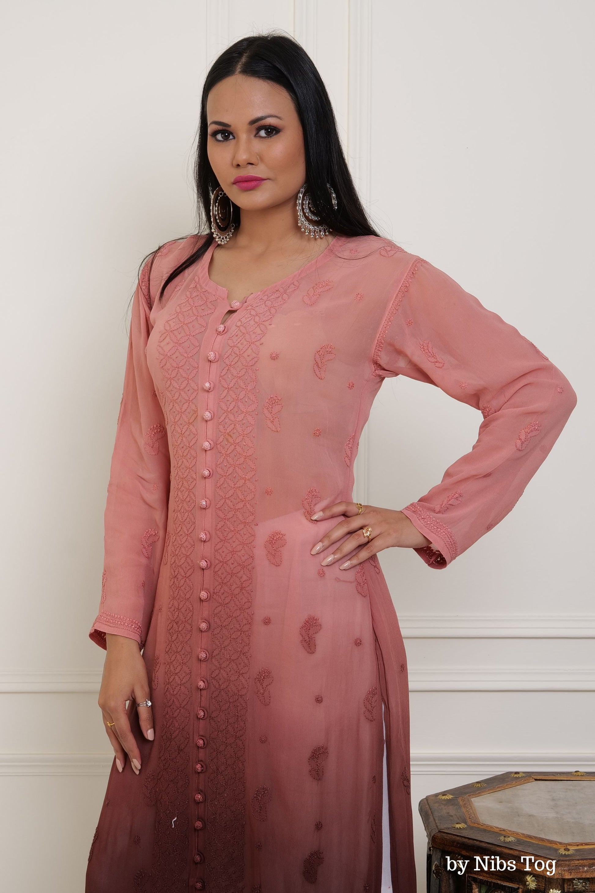 Nibs Tog Nahida Brown Ombre Chikankari Straight Kurta for Women