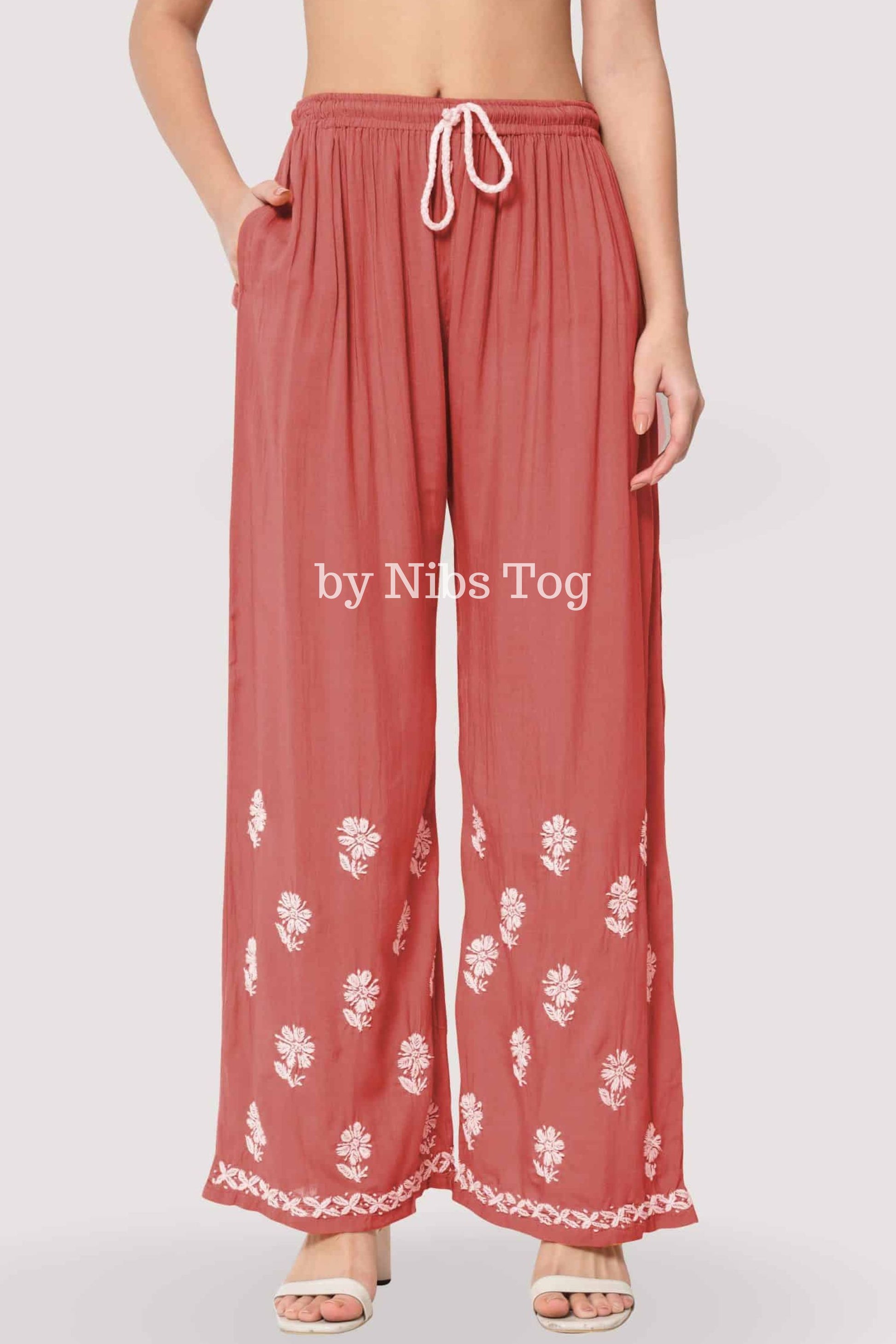 Chikankari Embroidered Rayon Cotton Kaftan Set Rust