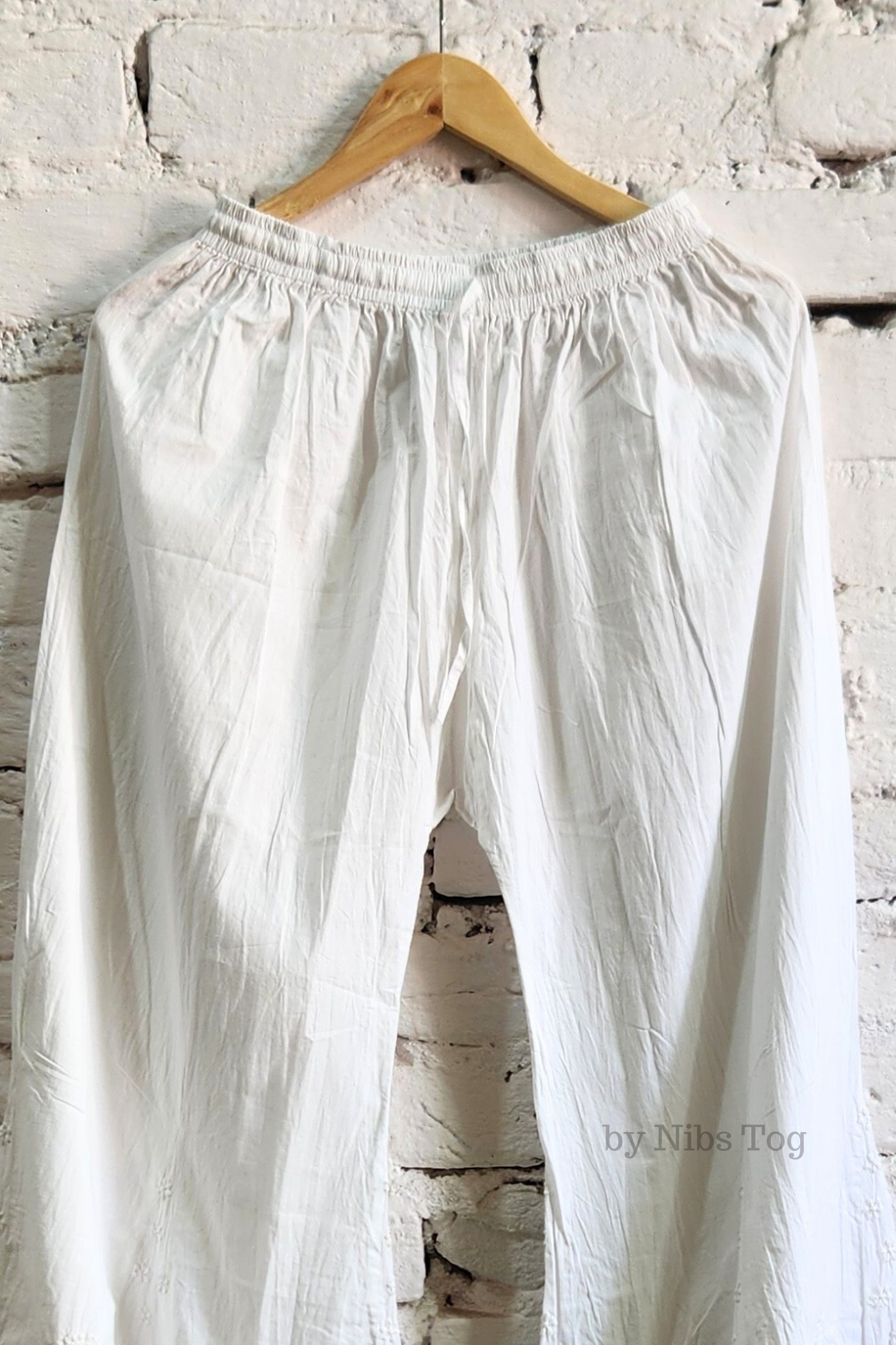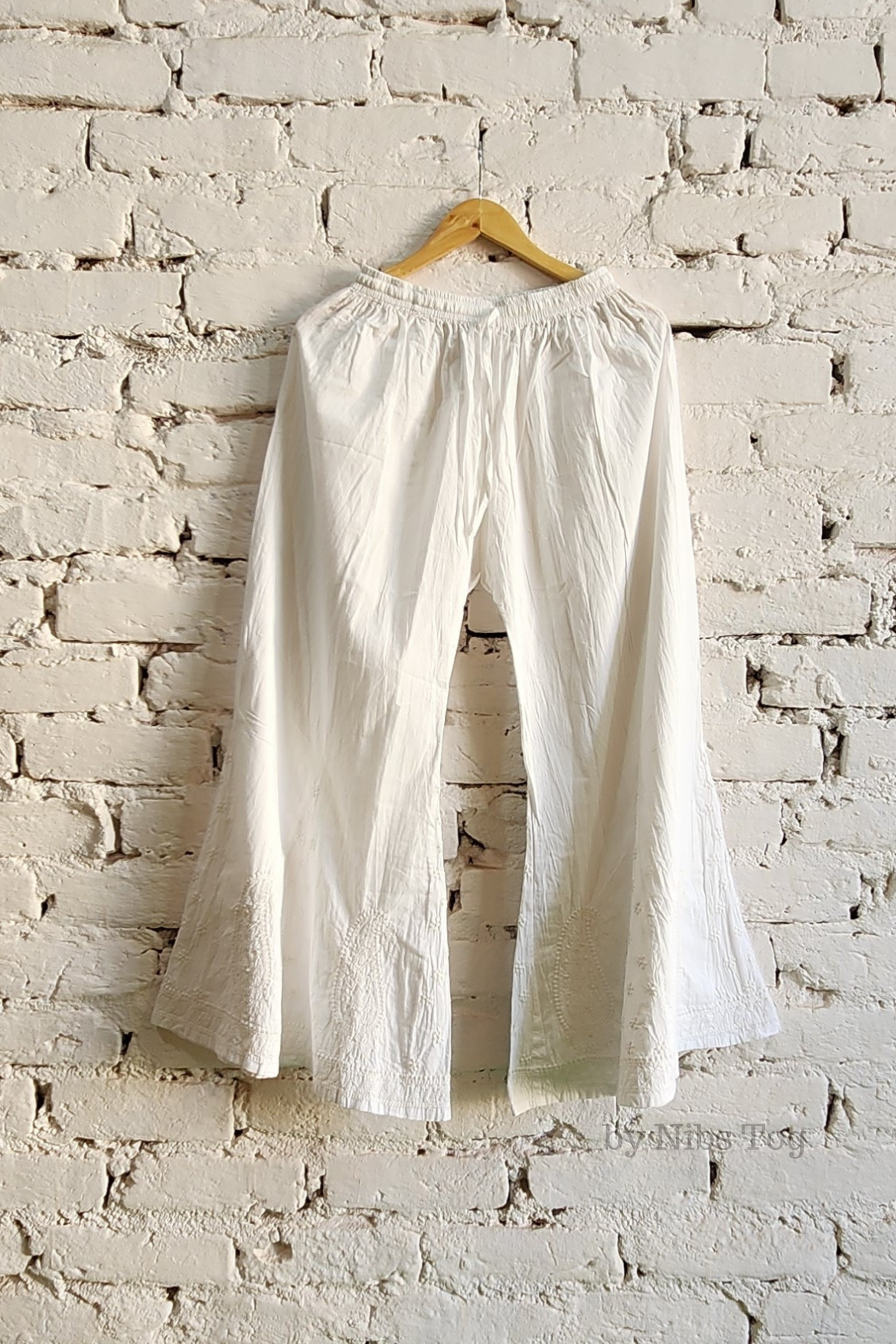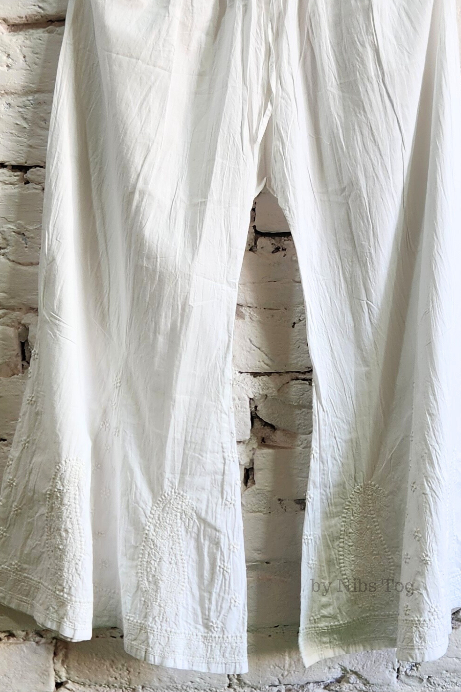 White Cotton Chikankari Flared Palazzo – by Nibs Tog