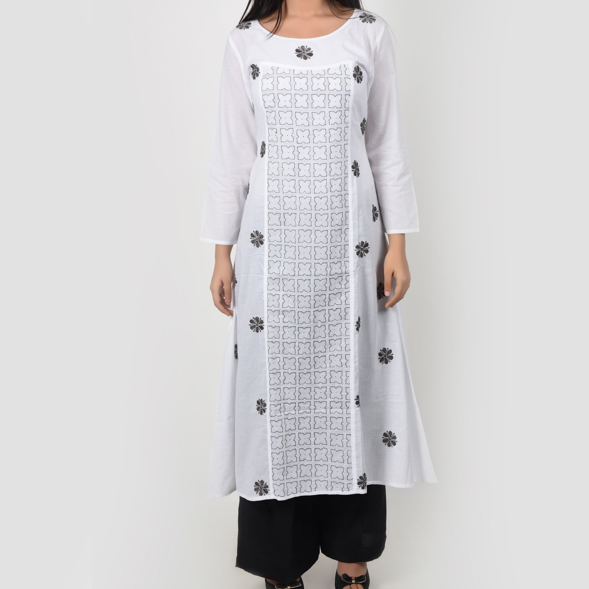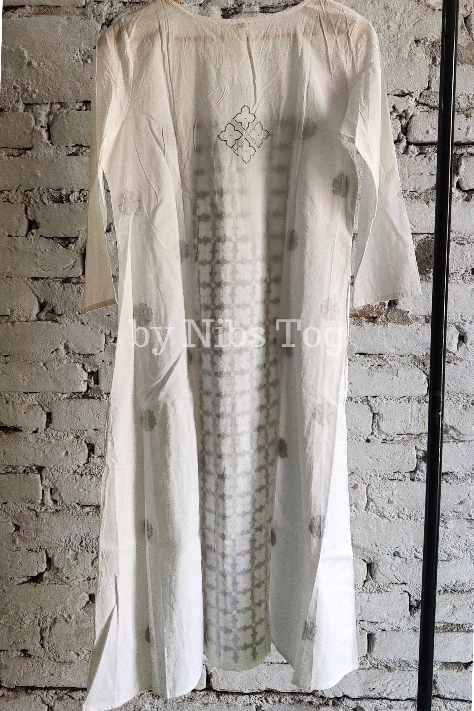 Nibs Tog Cotton Chikankari Kurta A Line White and Grey
