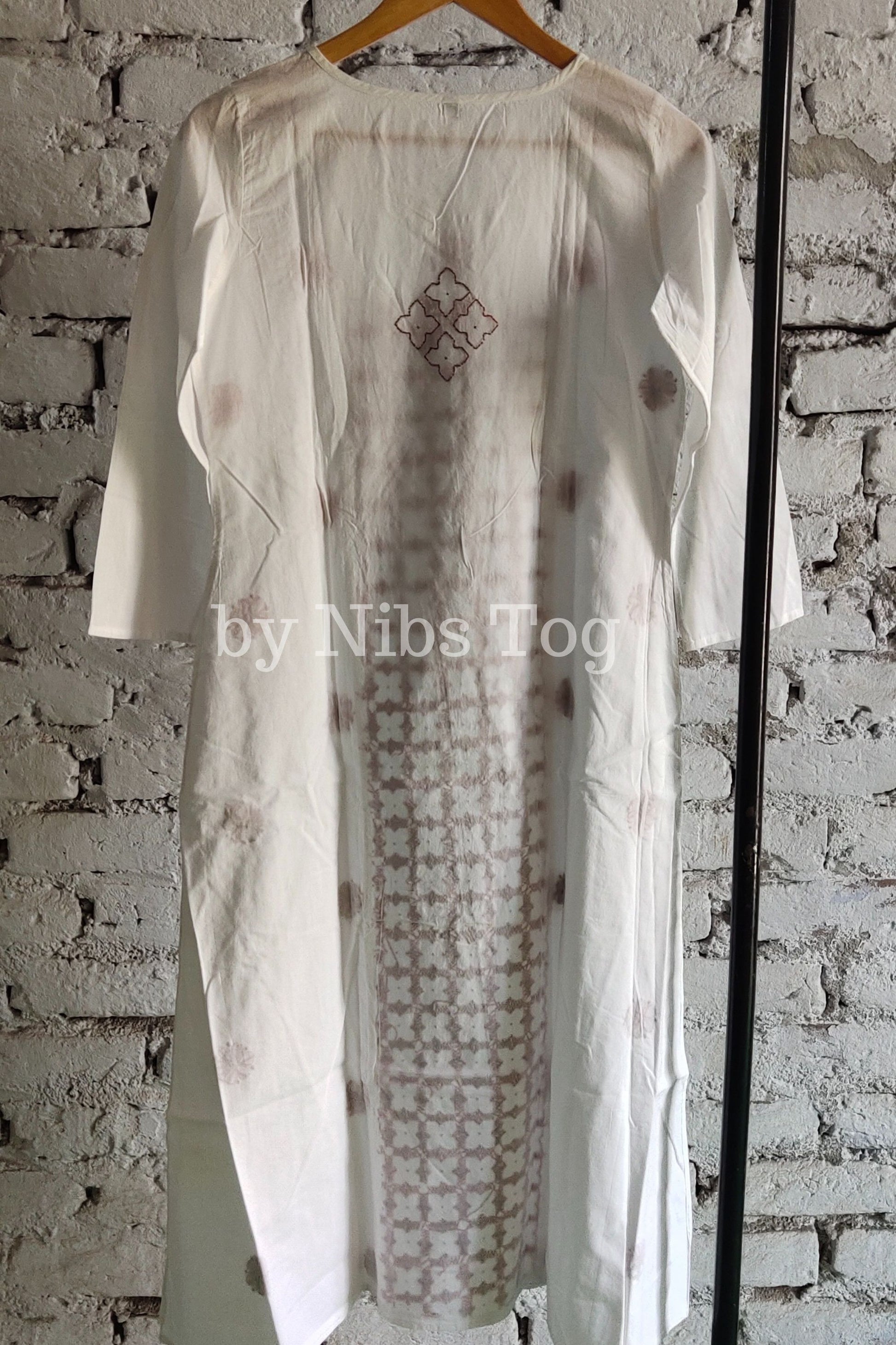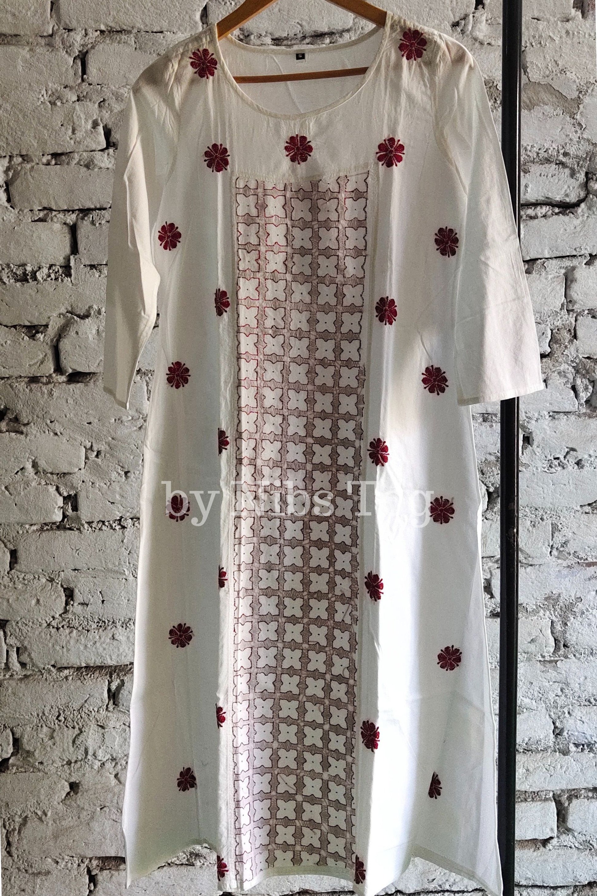Nibs Tog Cotton Chikankari Kurta A Line White and Maroon Medium