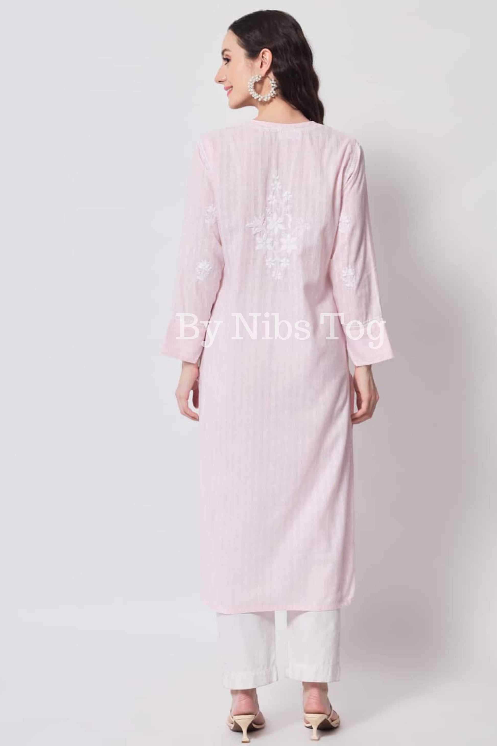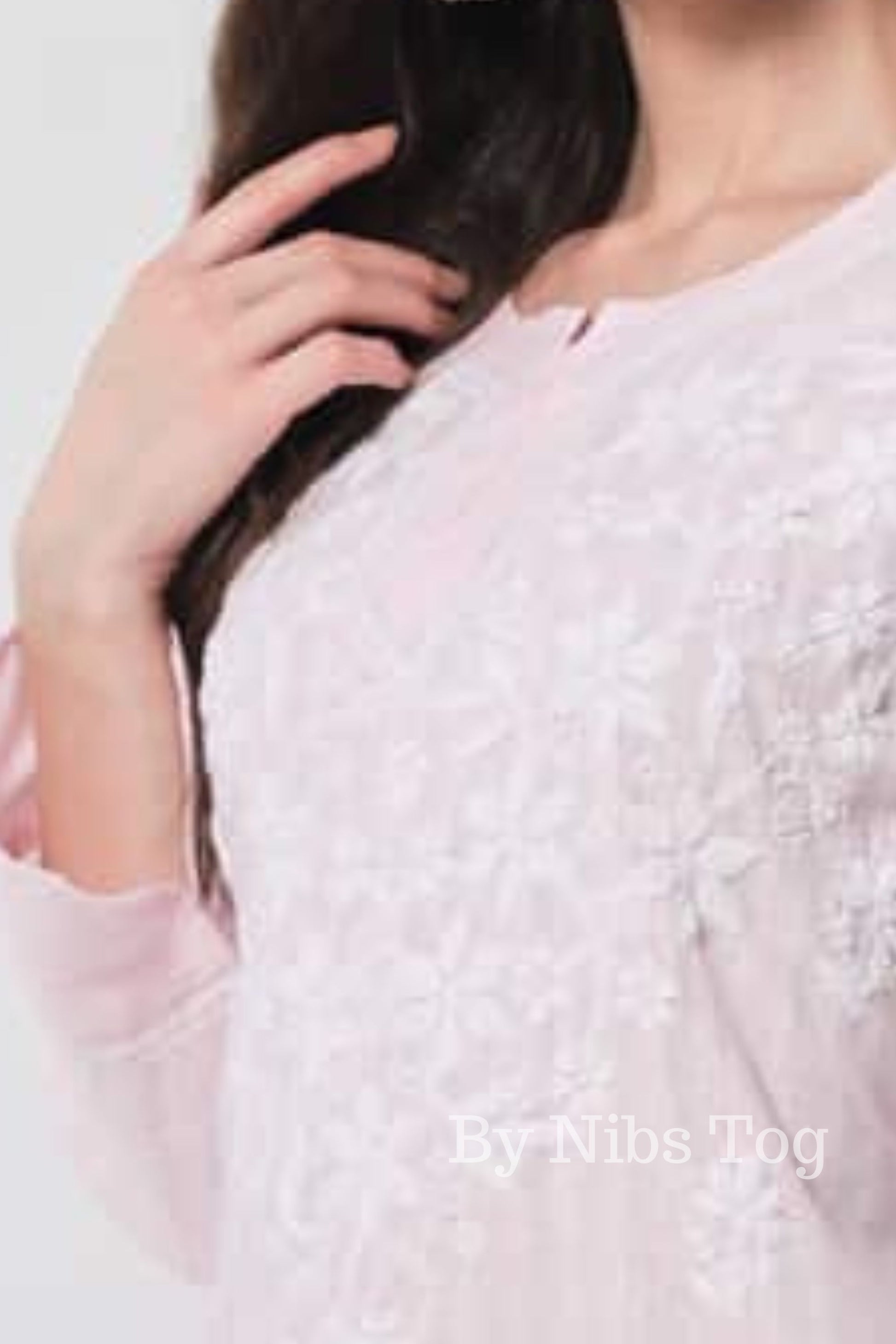 Cotton Chikankari Kurta for Women Pink Casual Wear