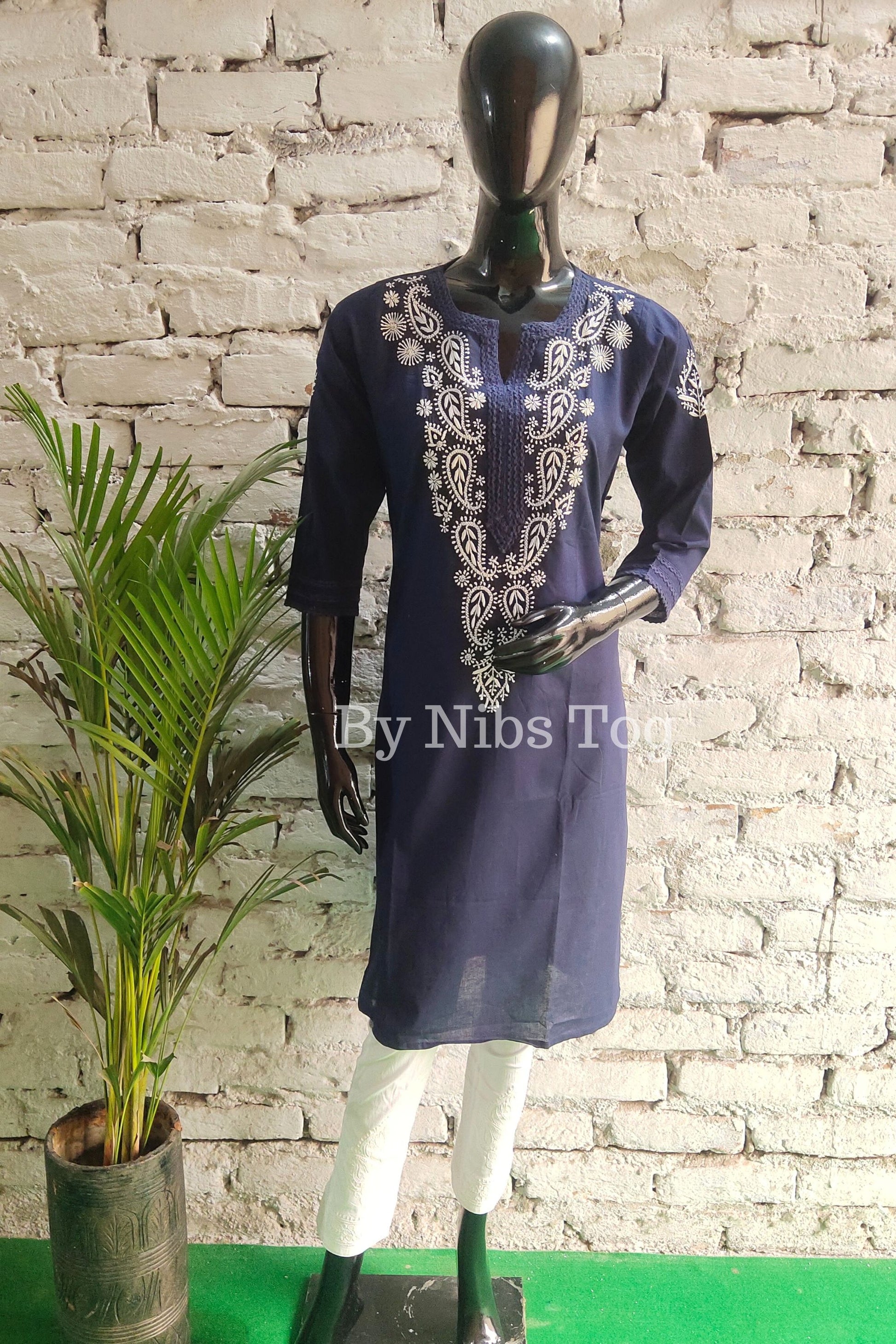 Introducing our handmade Lucknowi Chikankari Kurti for women in a stunning Indigo Blue color.