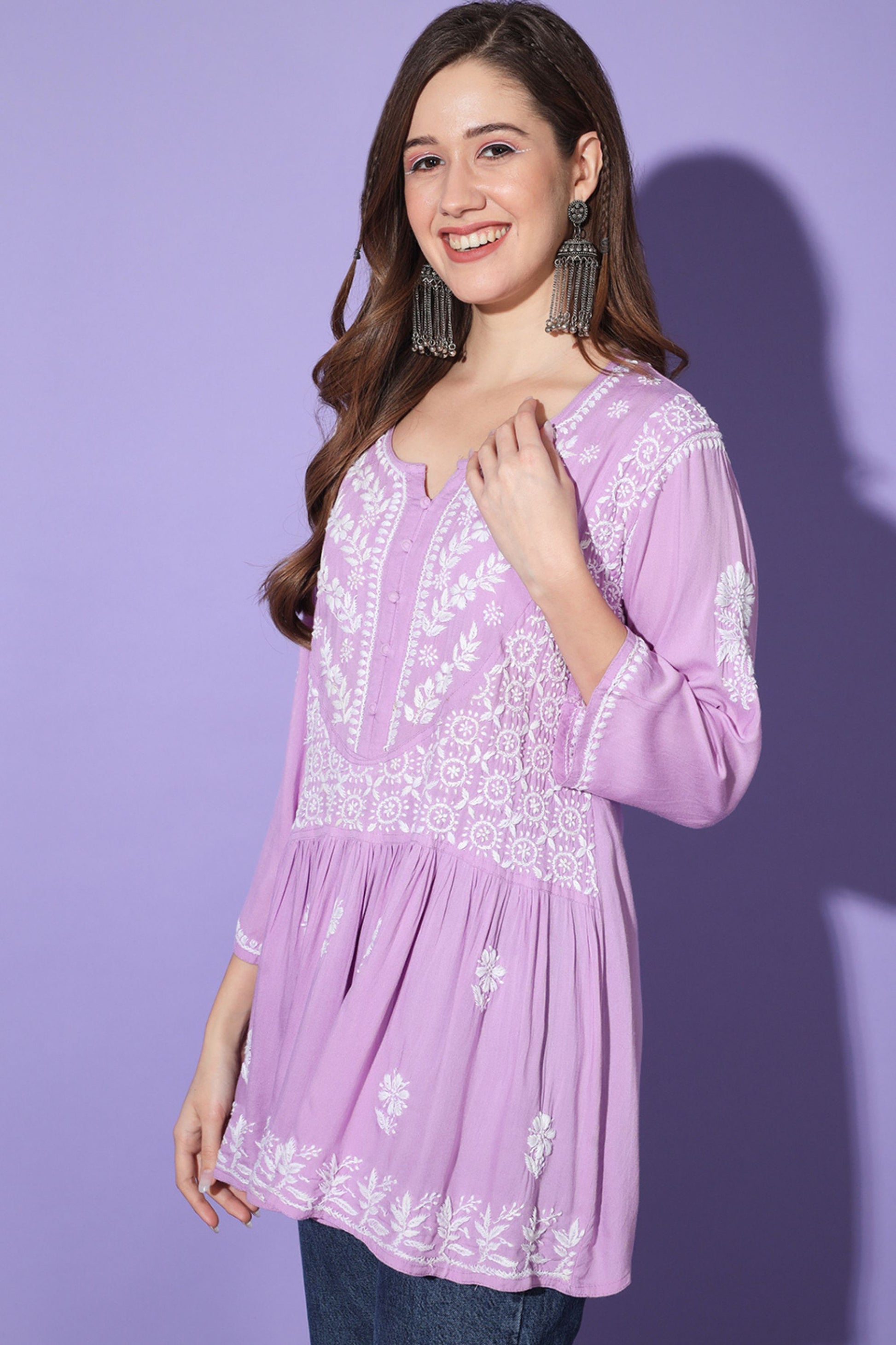 Nibs Tog Gul Lilac Chikankari Short Kurta Rayon Cotton