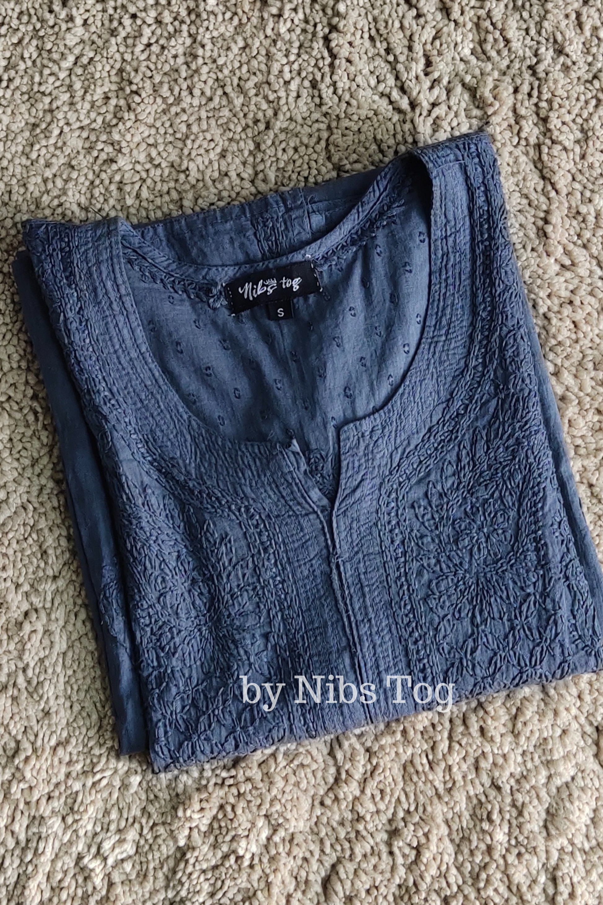 Nibs Tog Dobby Mulmul Cotton Chikankari kurta Pant Set for Women
