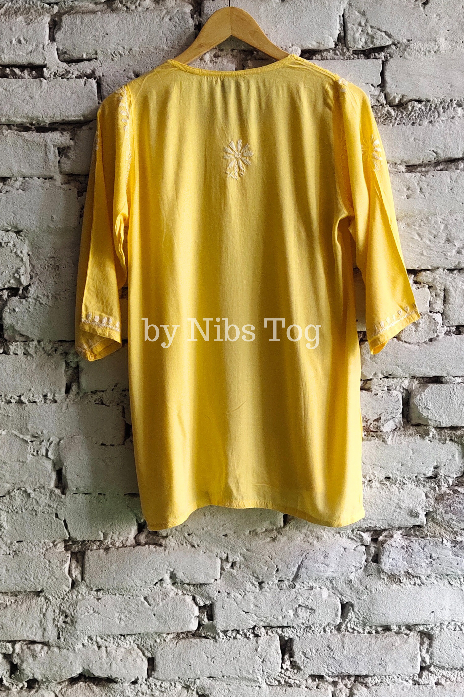 Introducing our exquisite Light Yellow Rayon Cotton Chikankari Short Kurta.