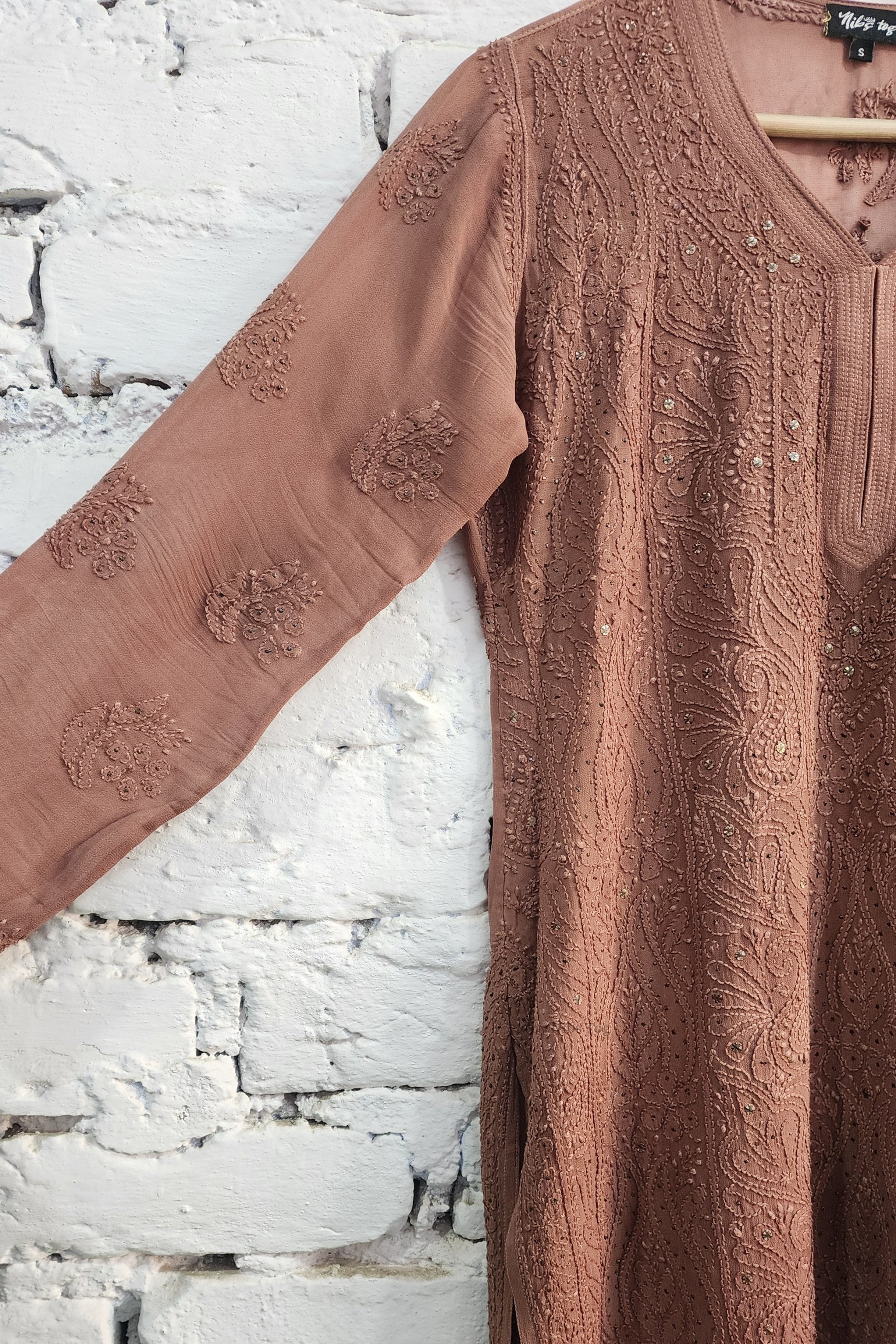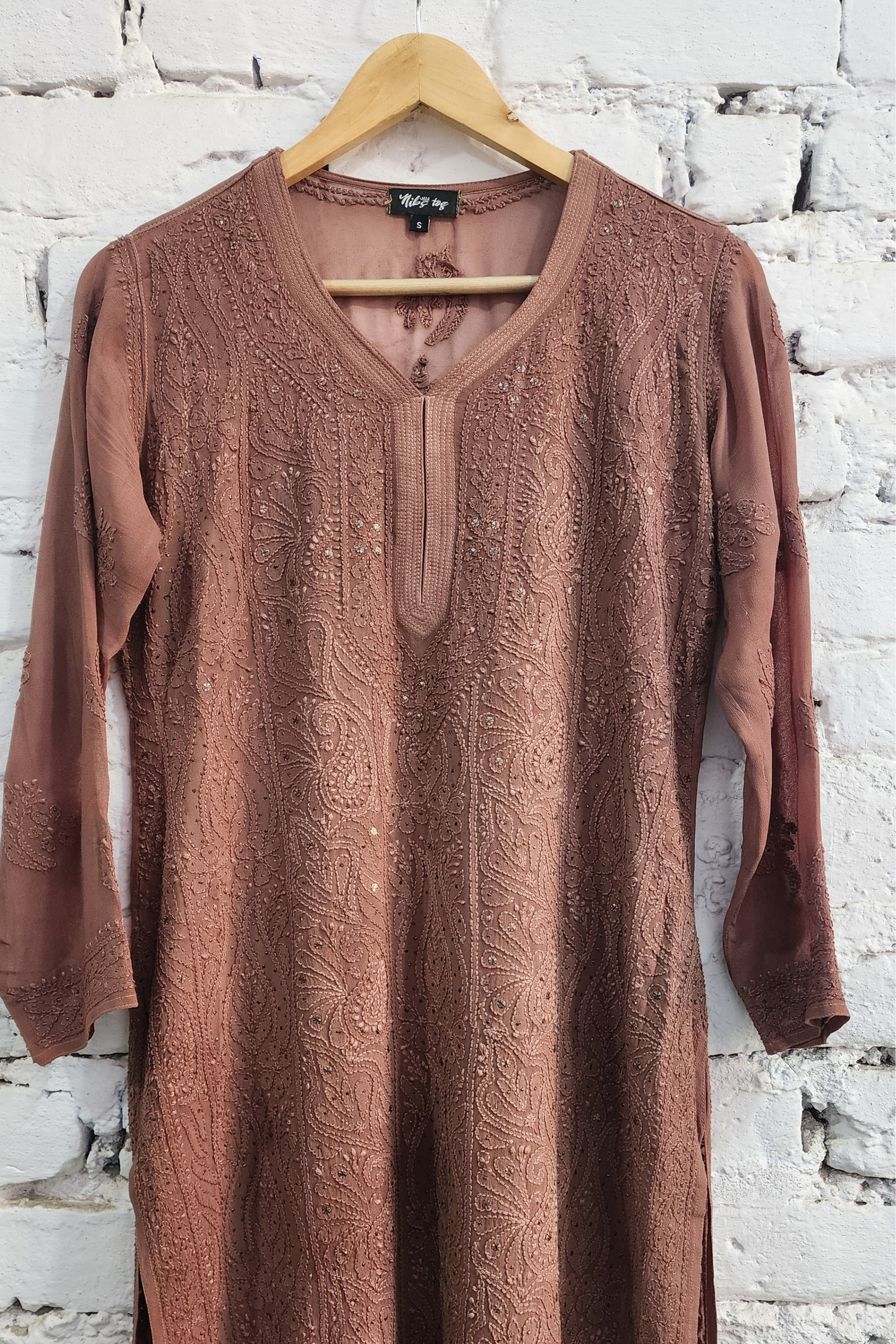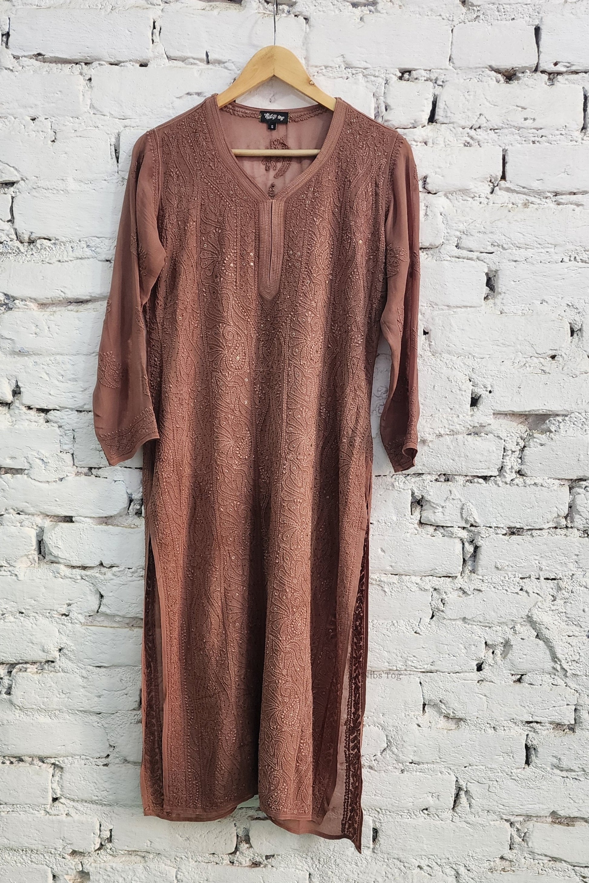 Nibs Tog Mocha Mousse Straight Chikankari Kurta Set with Dupatta
