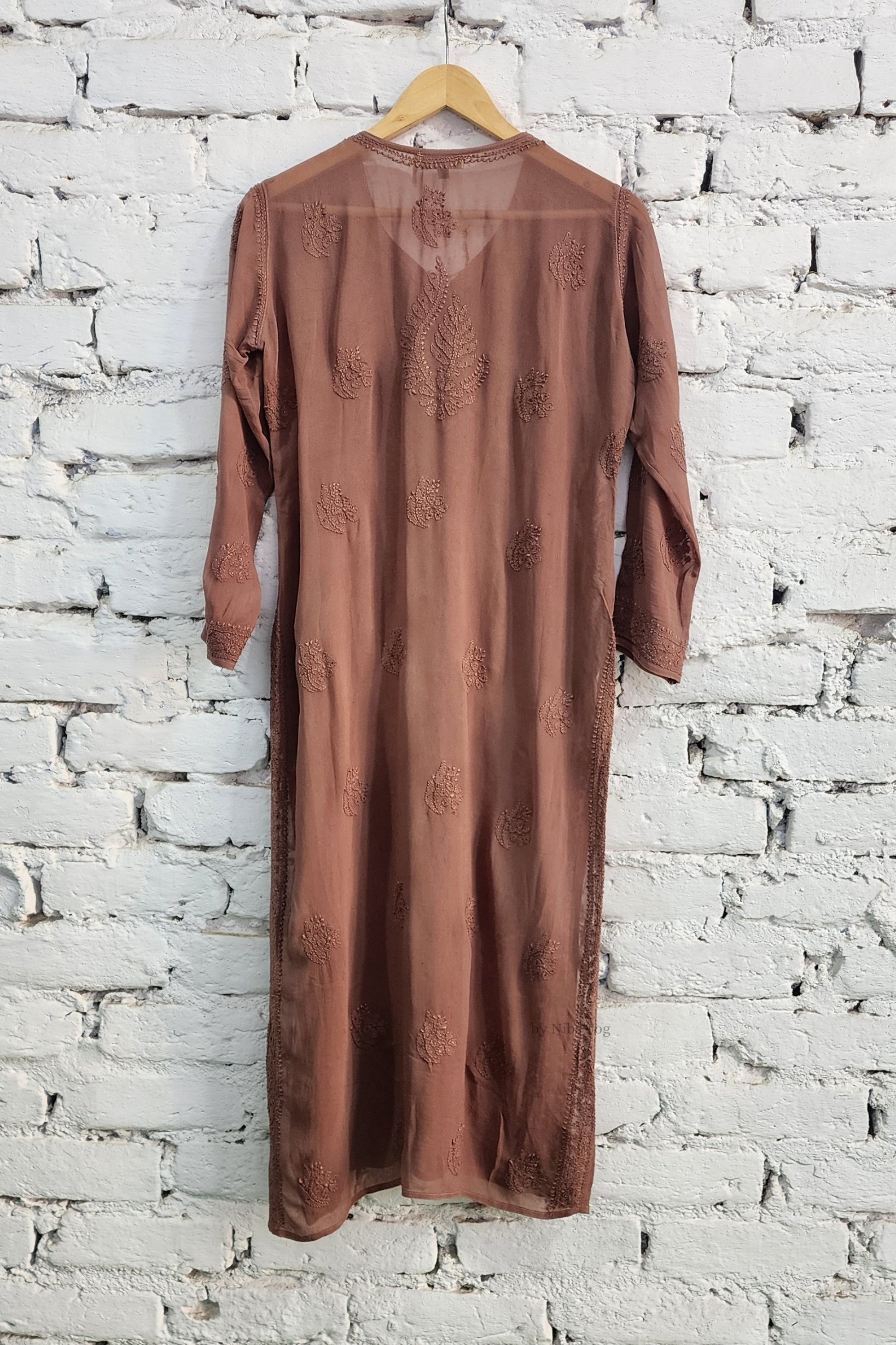 Mocha Mousse Straight Chikankari Kurta Set with Dupatta
