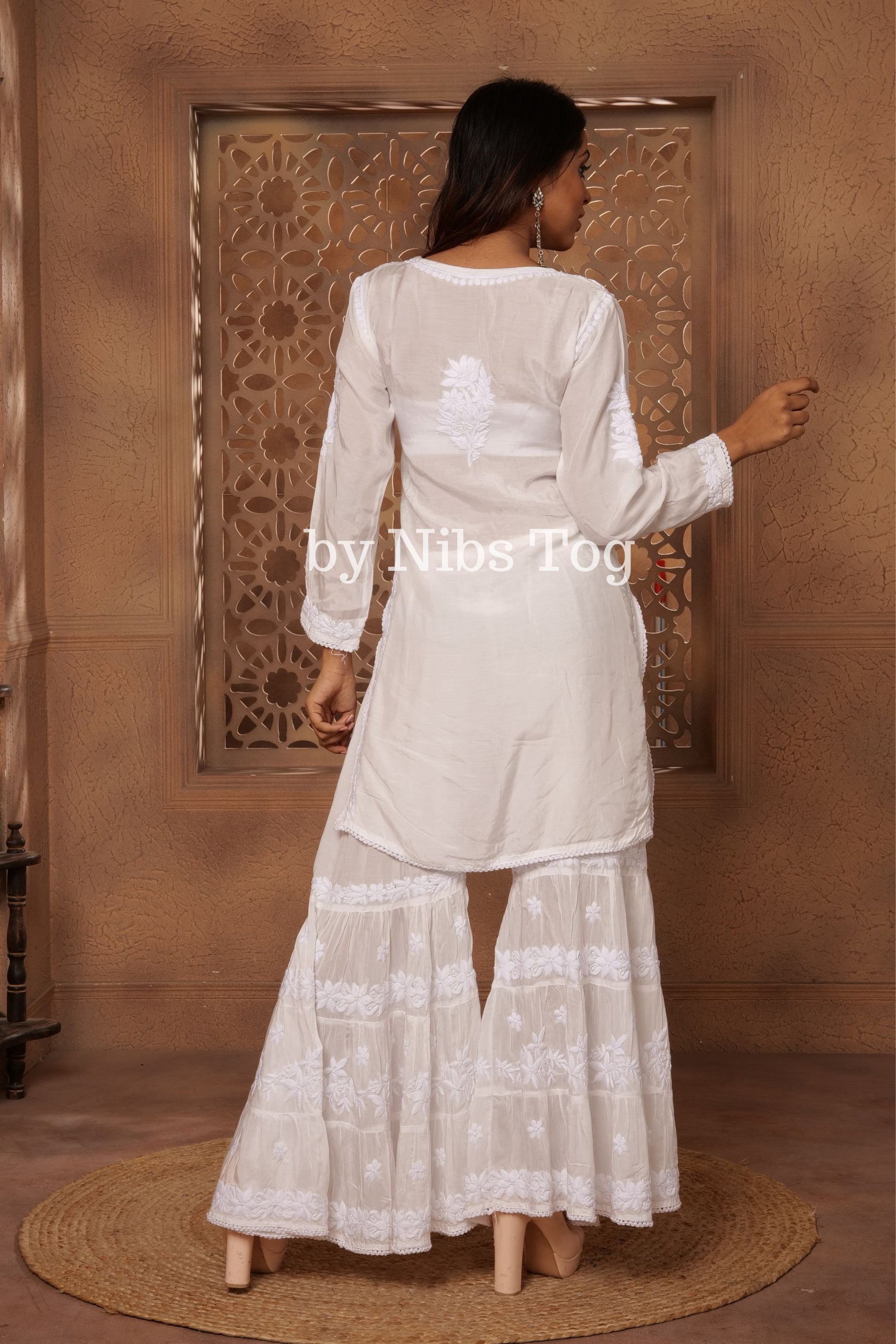 Nibs Tog Handcrafted Muslin Cotton White Chikankari Kurta Garara Set