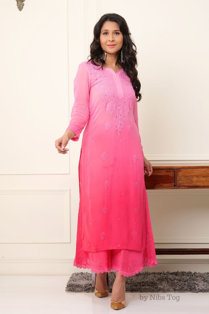 Make a style statement with our Ombre Pink Party Wear Chikankari Kurta Palazzo Set with Dupatta. Order now and experience the perfect blend of fashion, comfort, and elegance!