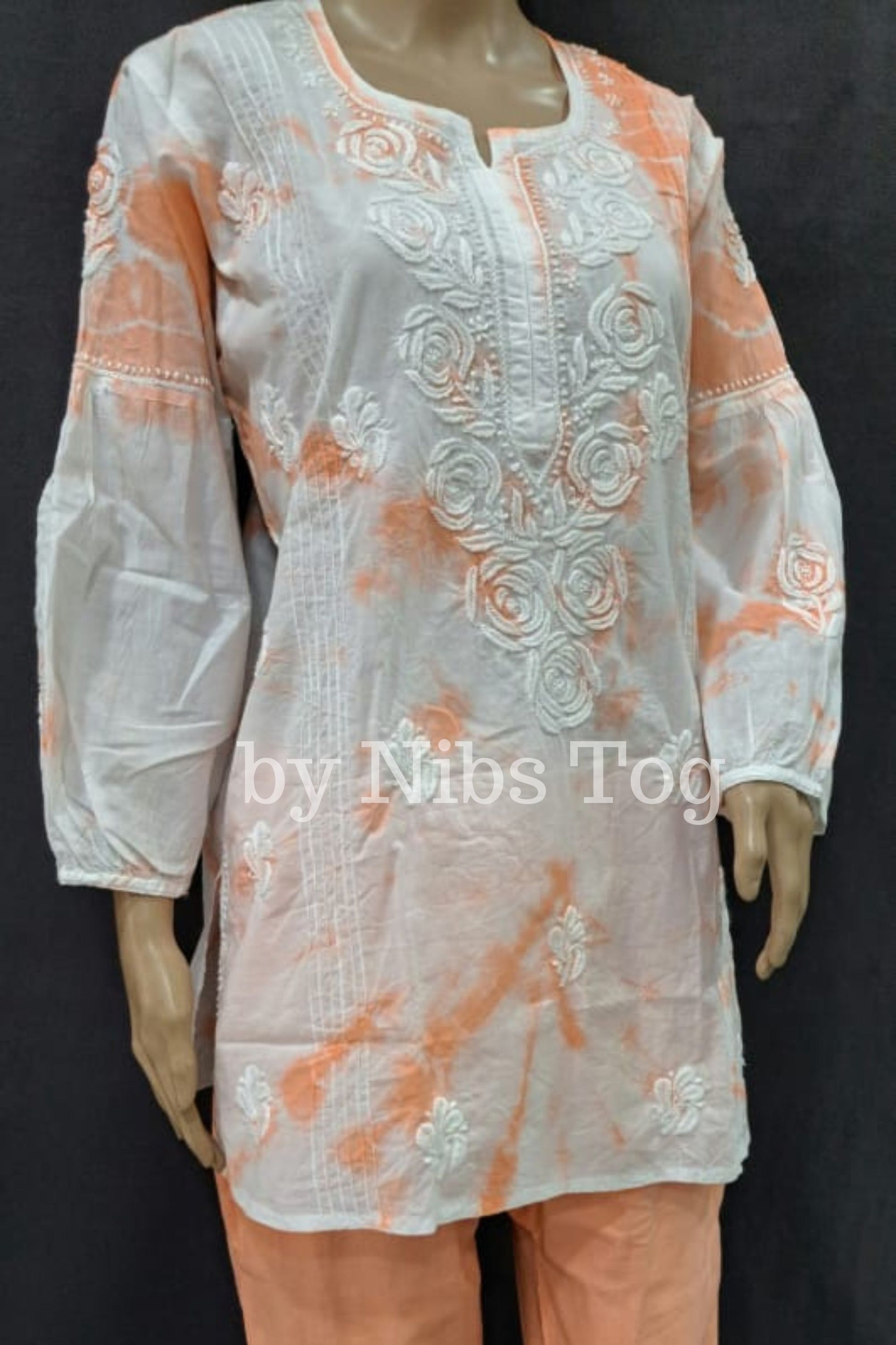 Nibs Tog Peach Tie & Dye Chikankari Co-ord Set