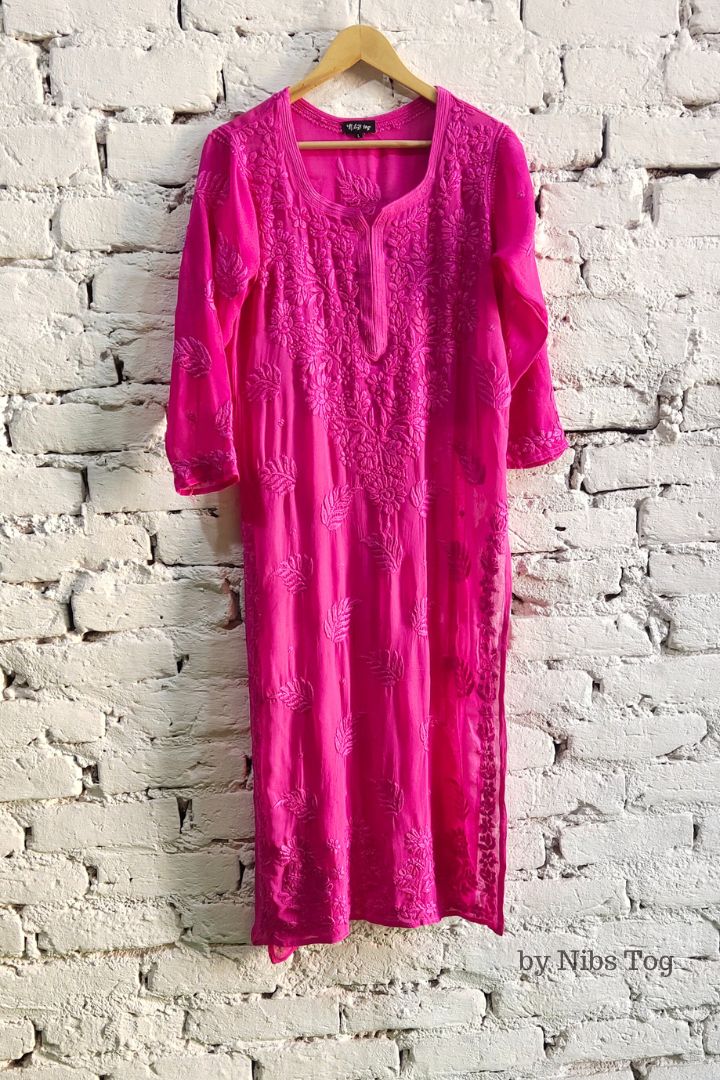 Nibs Tog Pink Georgette Chikankari Kurta for Women with Inner