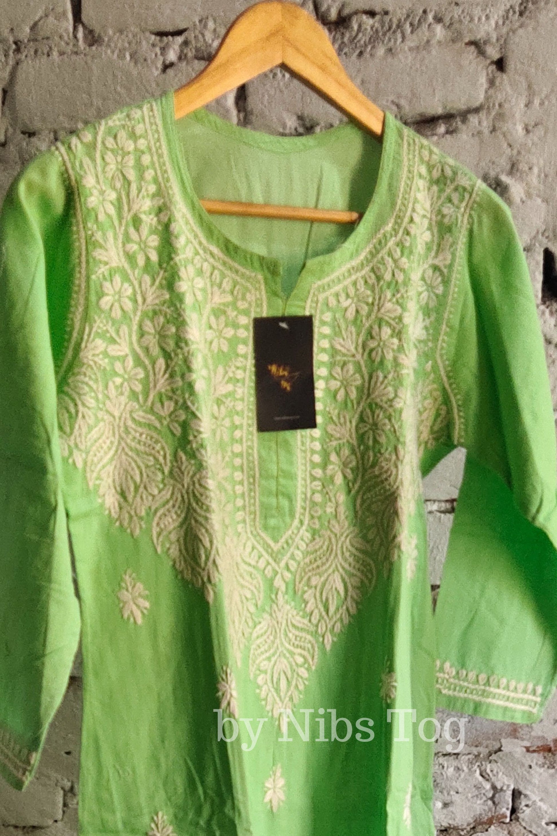 Nibs Tog Pure Cotton Chikankari Kurta for Women Green Medium
