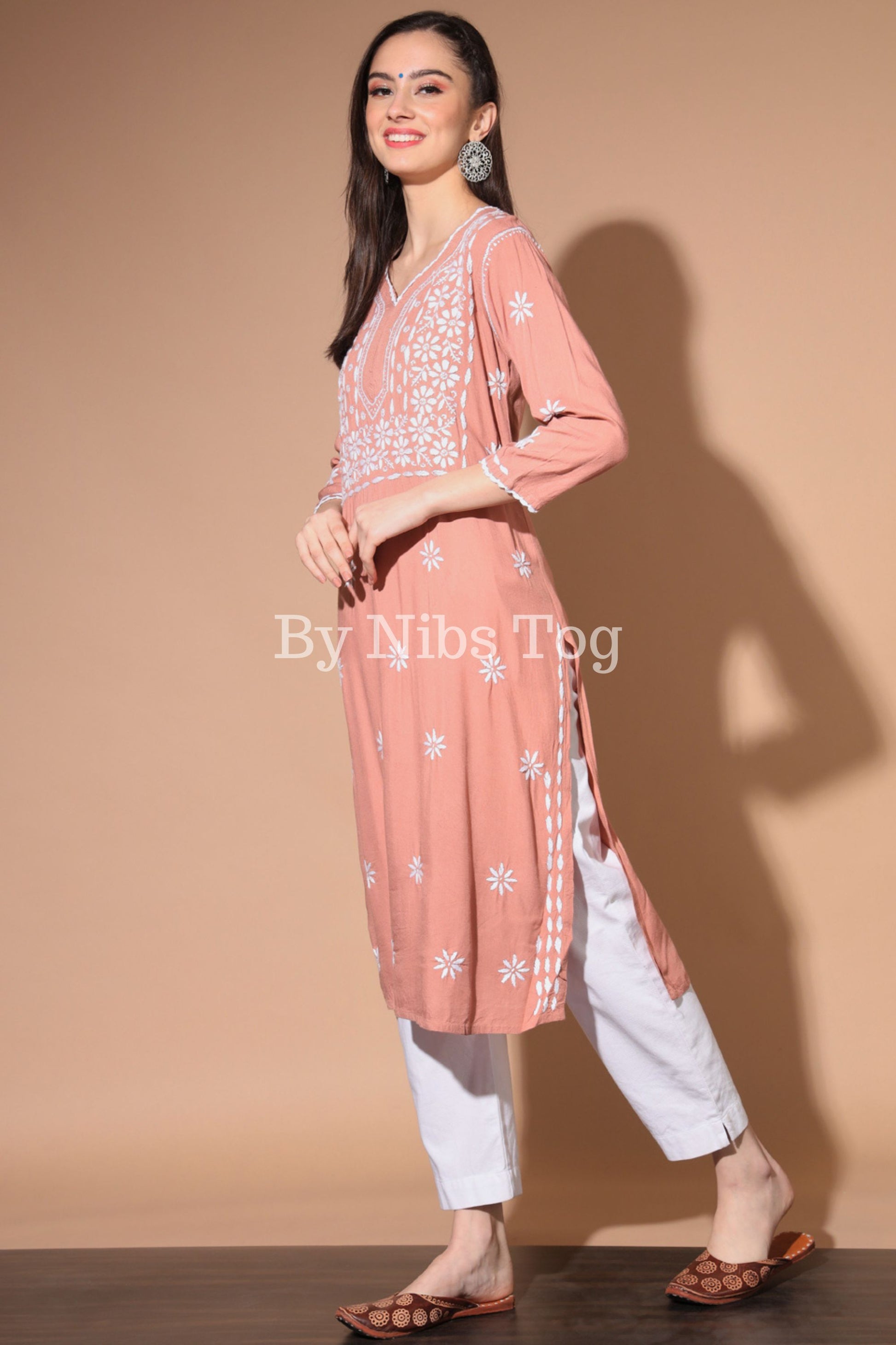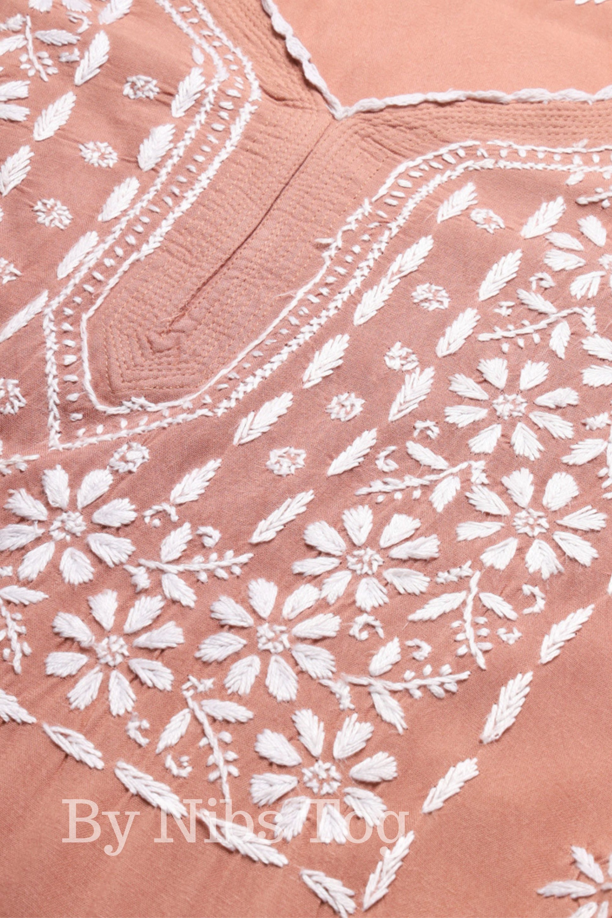 Nibs Tog Straight Rust Lucknowi Chikankari Kurta for Women Rayon Cotton