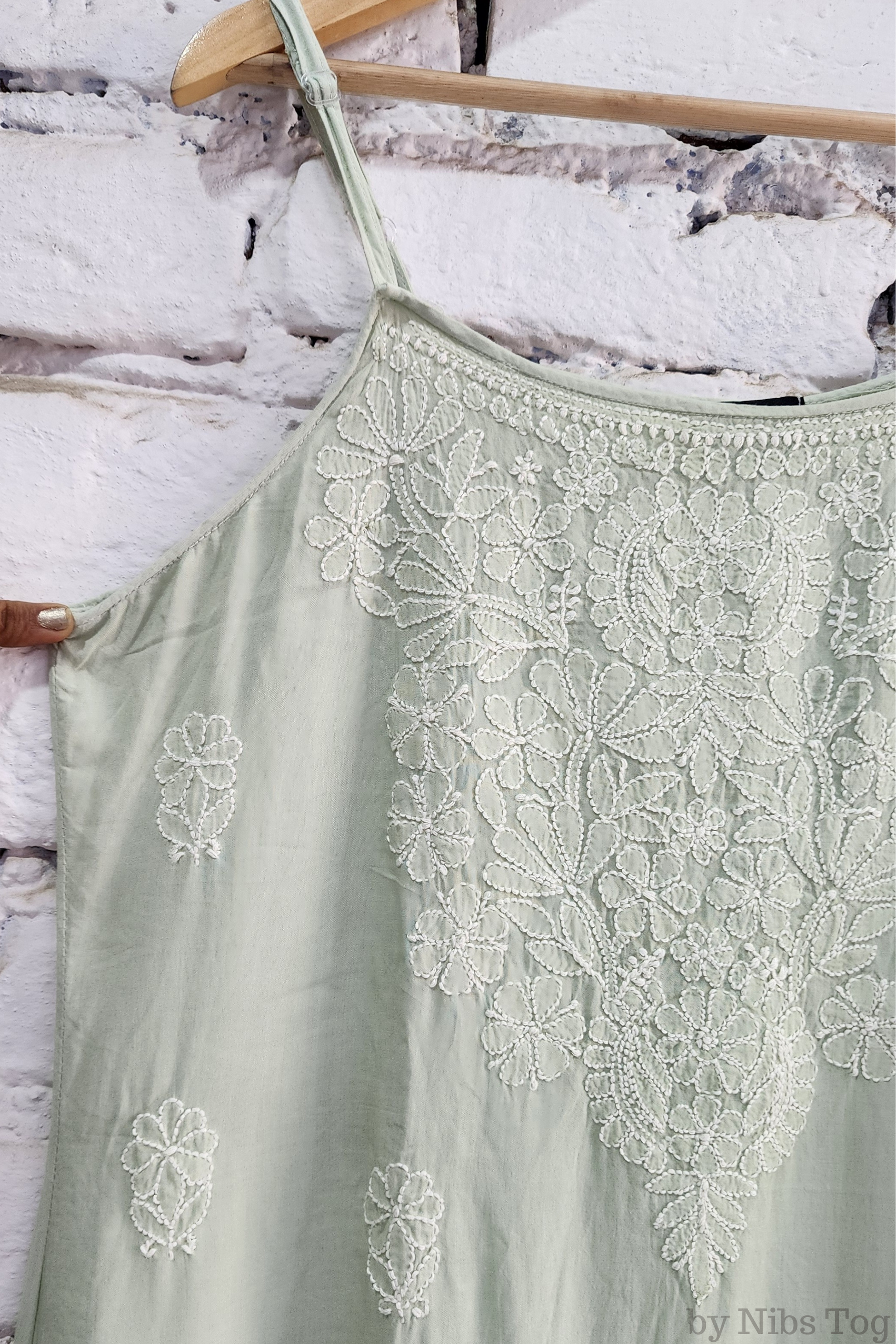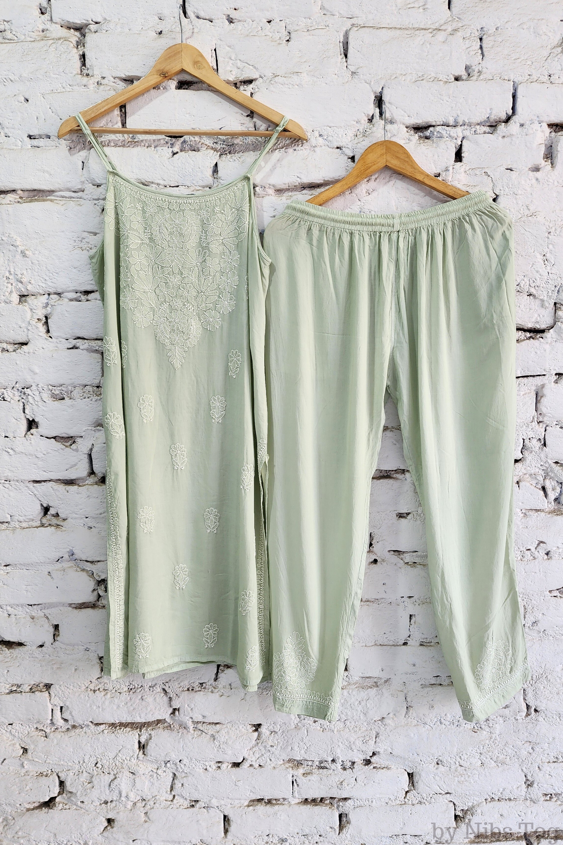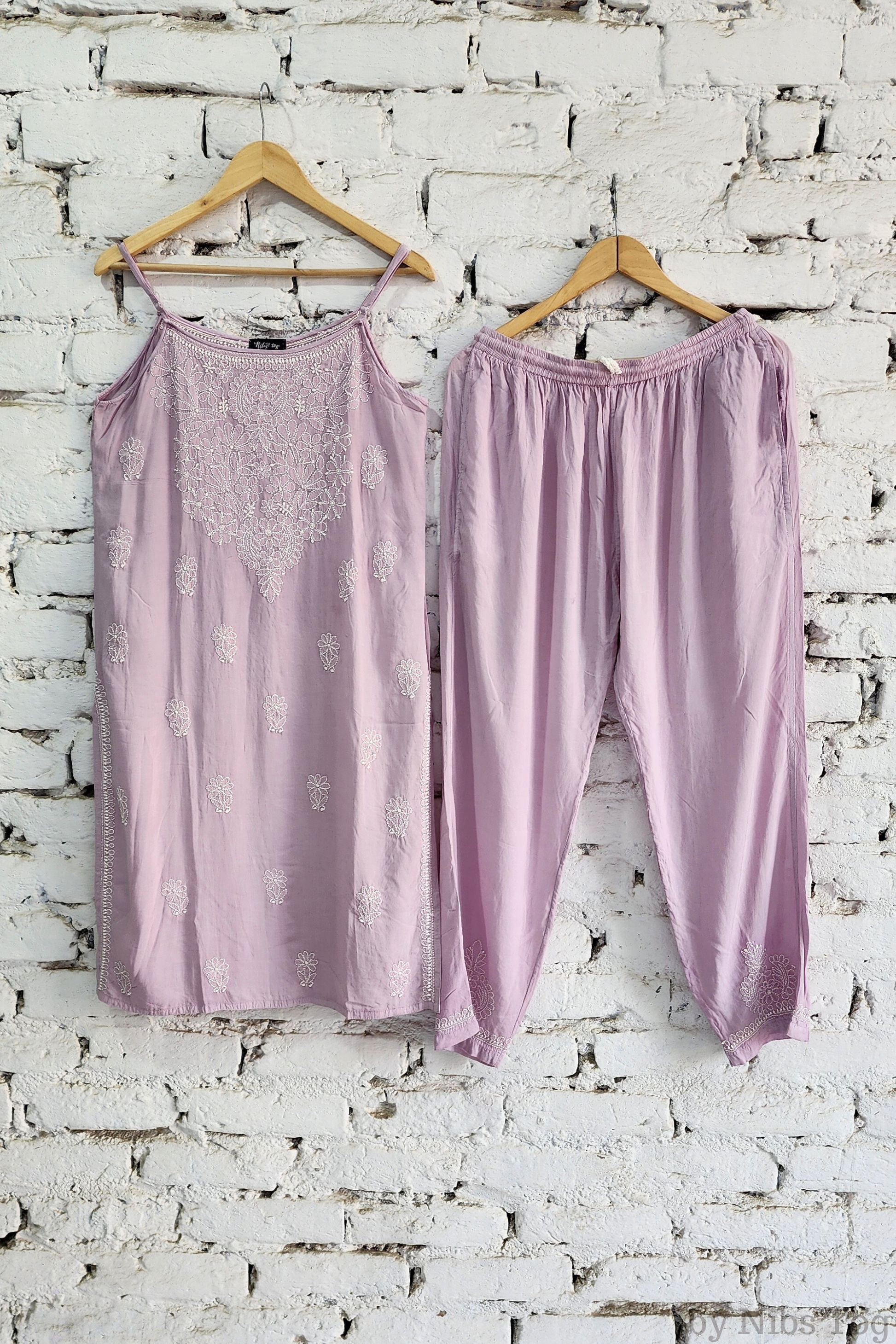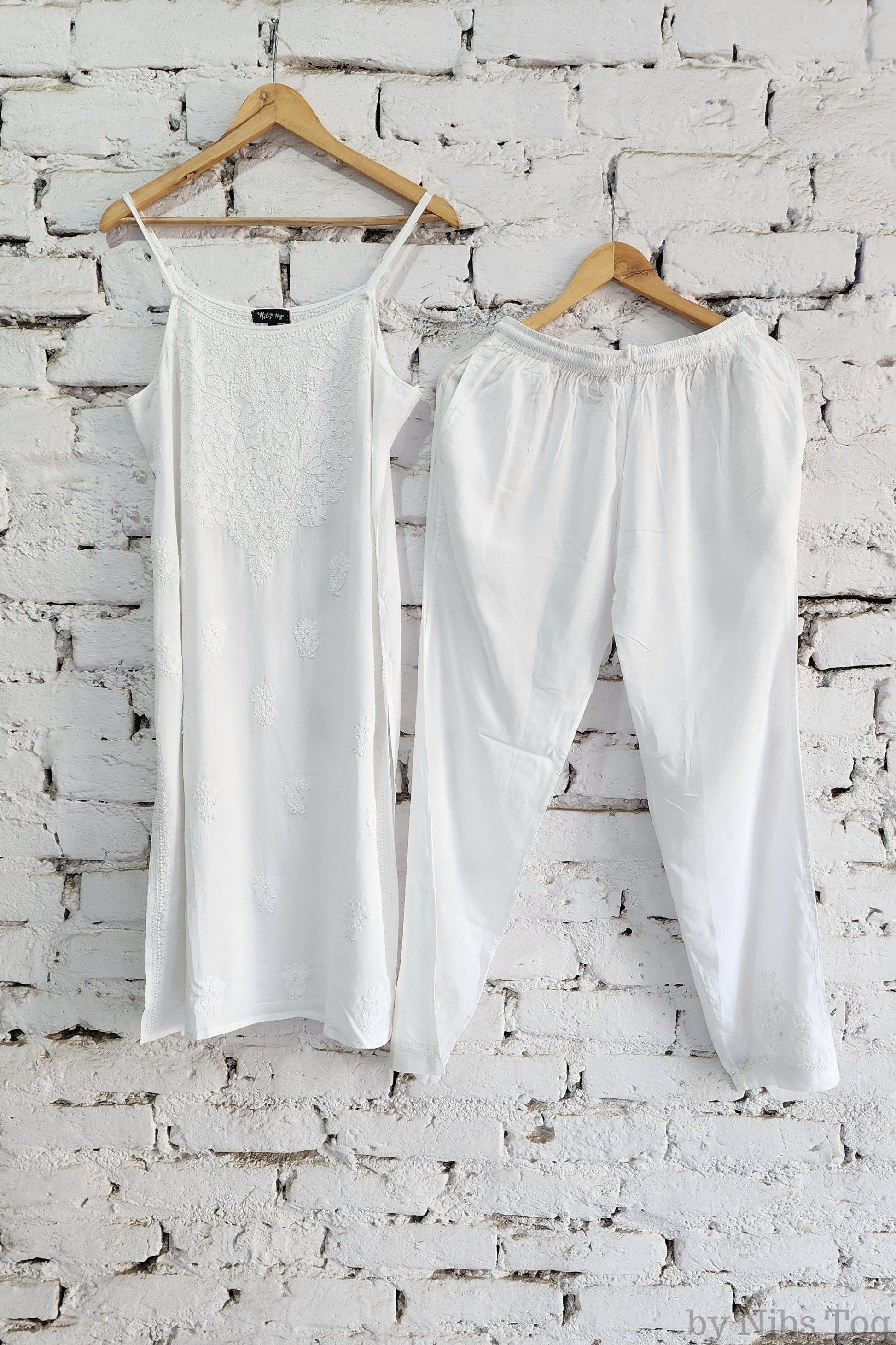 Nibs Tog Sutr Chikankari Embroidered Strap Kurta Pant Set