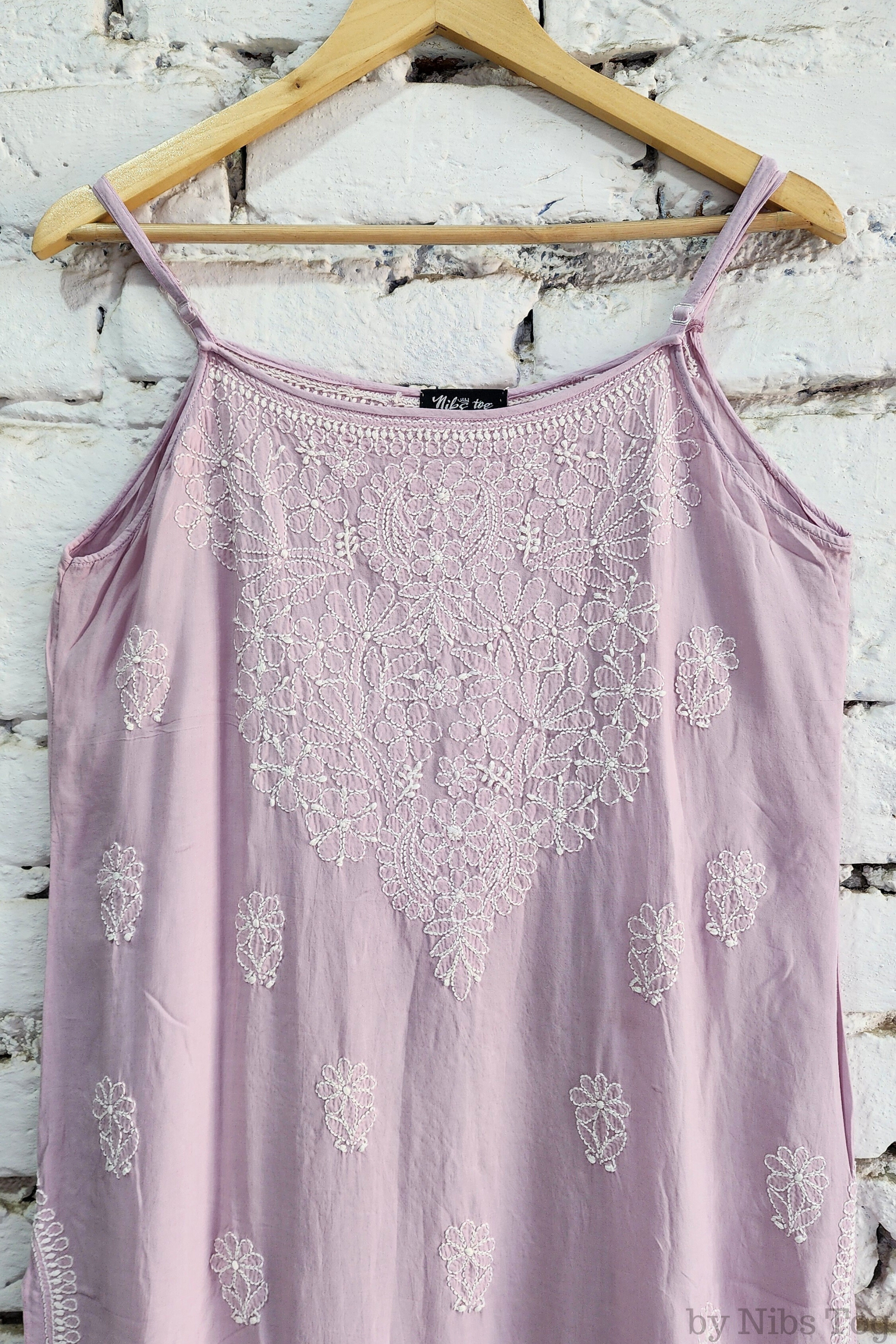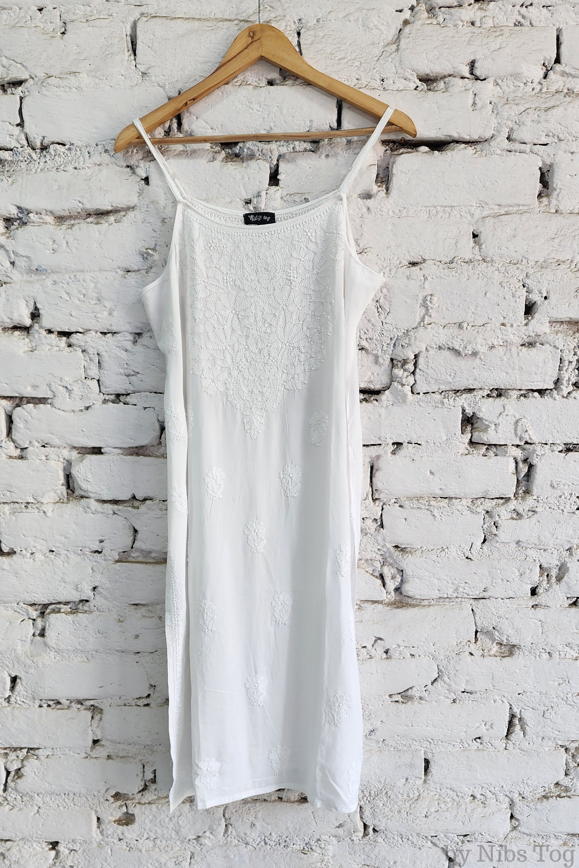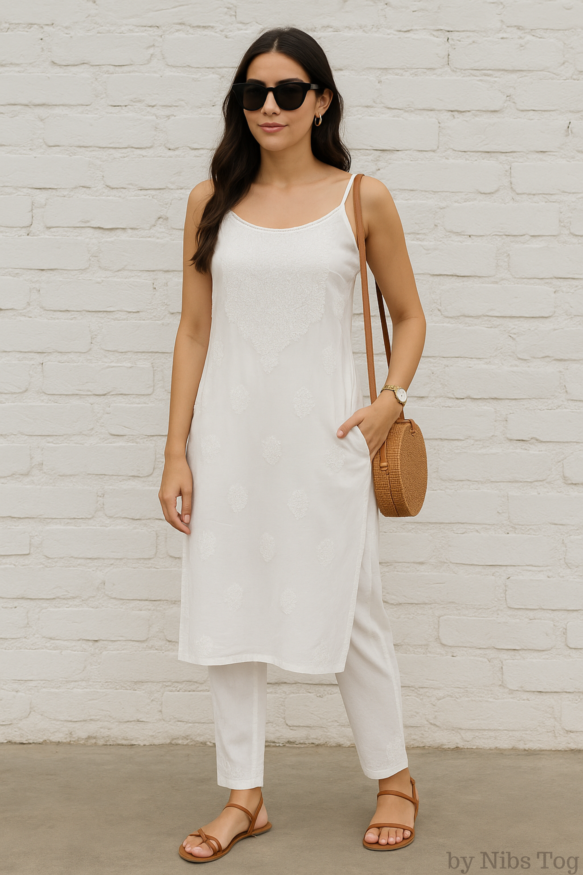 Nibs Tog Sutr Chikankari Embroidered Strap Kurta Pant Set