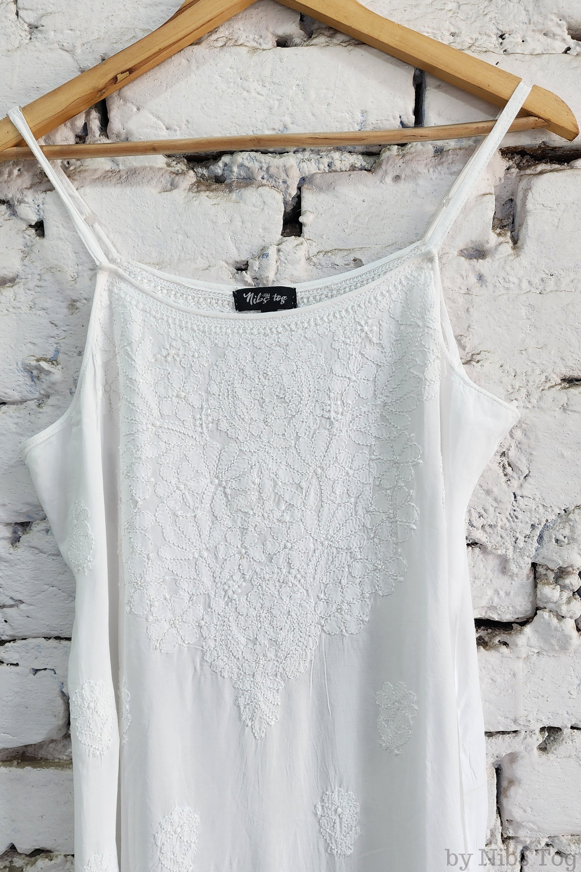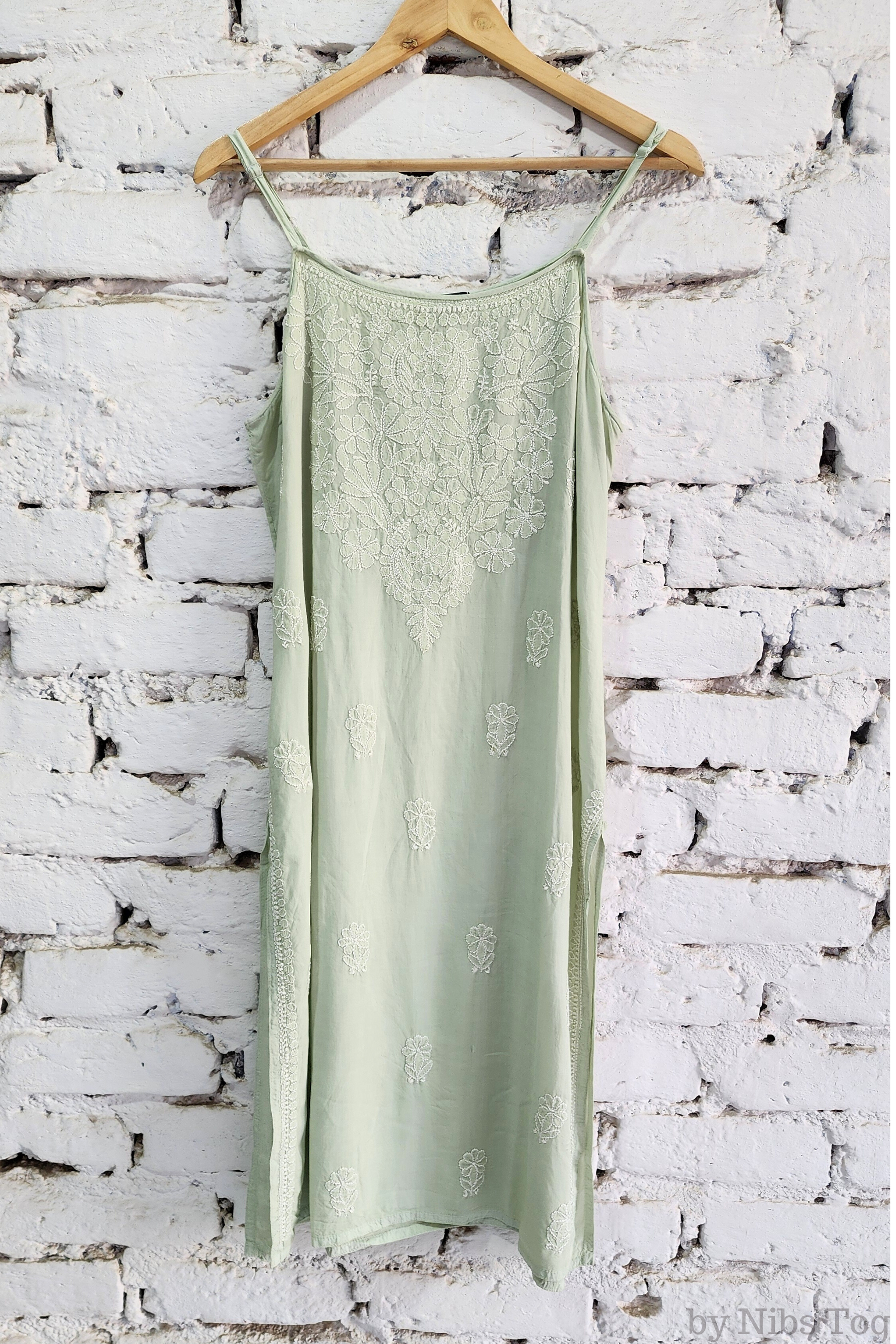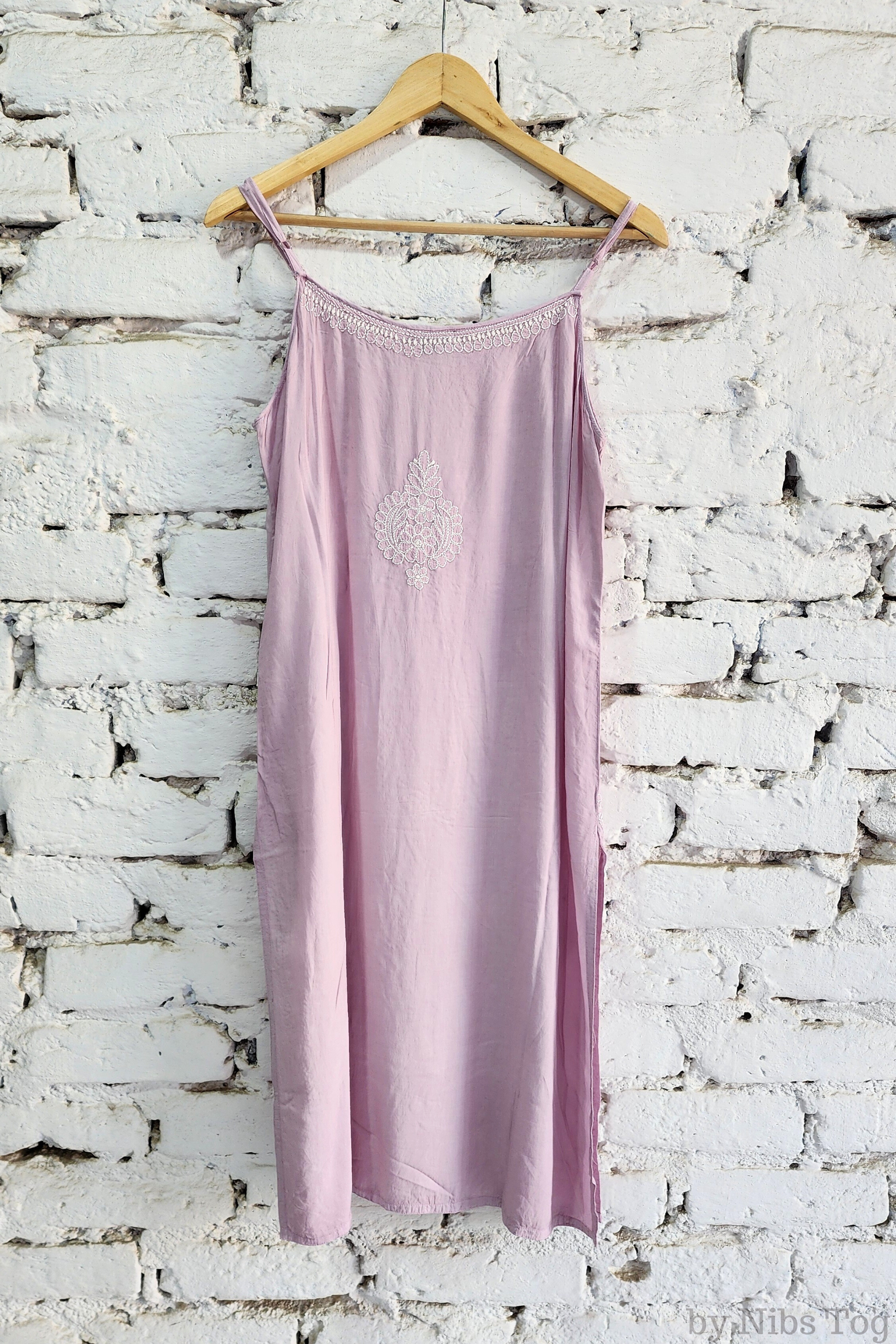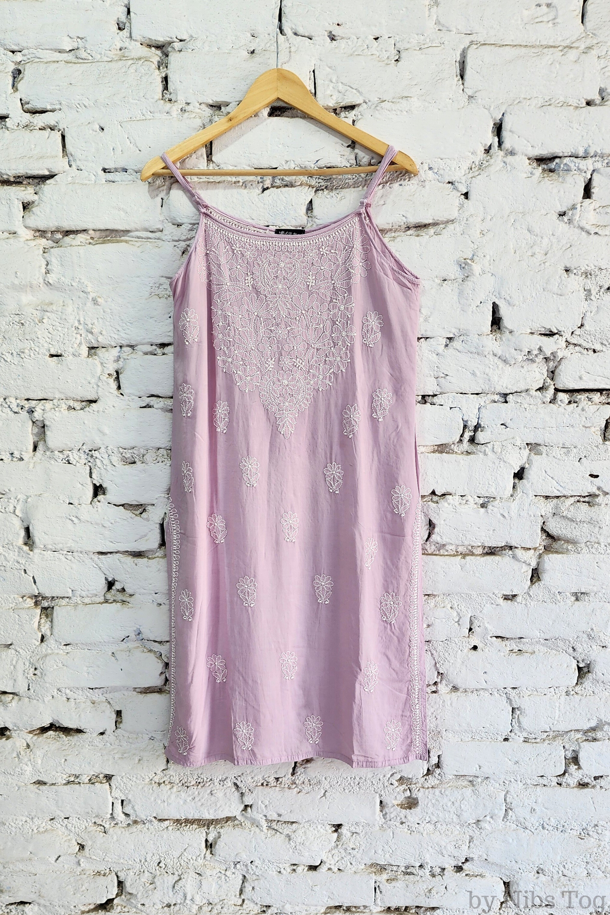 Nibs Tog Sutr Chikankari Embroidered Strap Kurta Pant Set