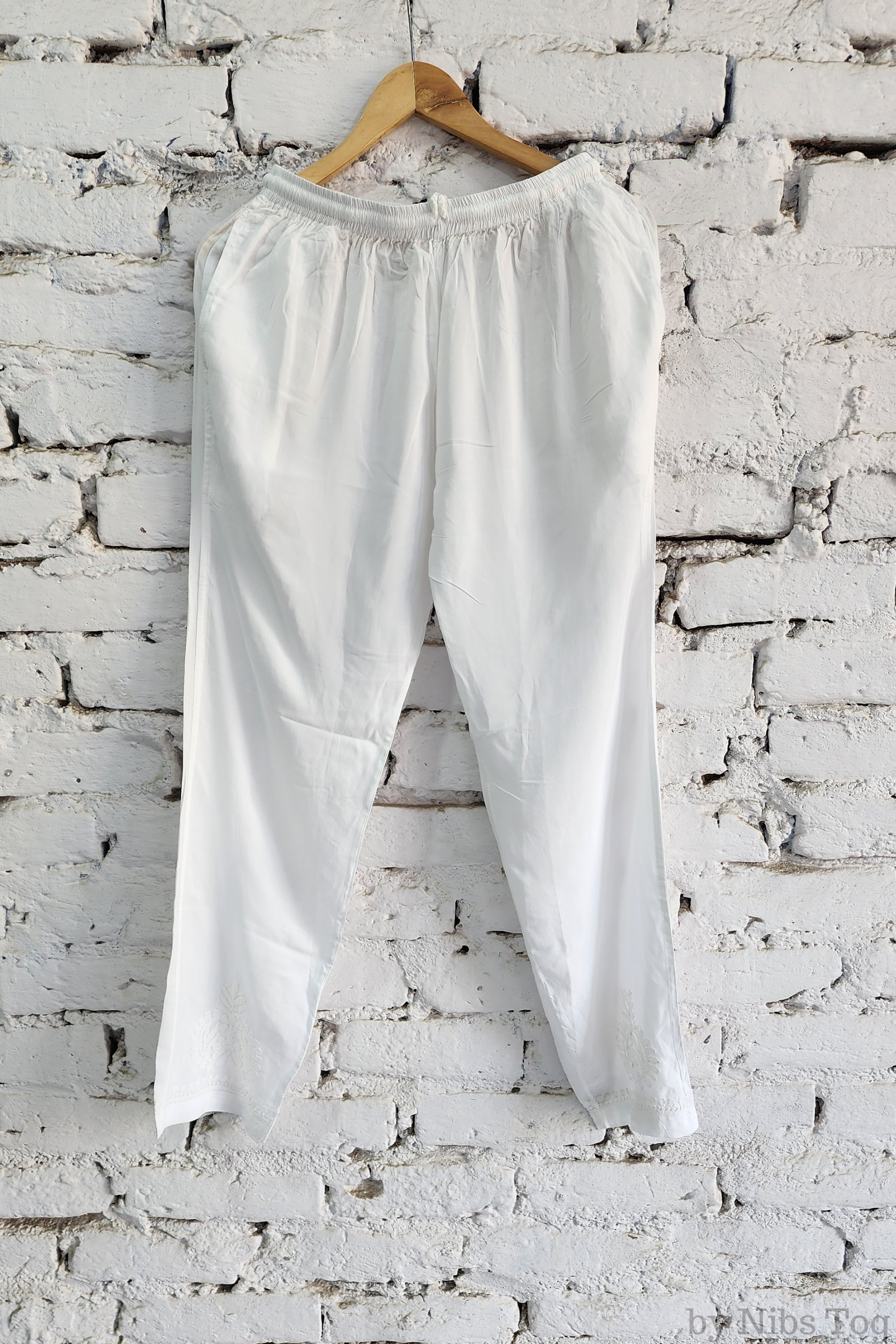 - Artisan Detailing: Intricate white Chikankari hand embroidery on both the kurta and pants — each piece is a work of art.
