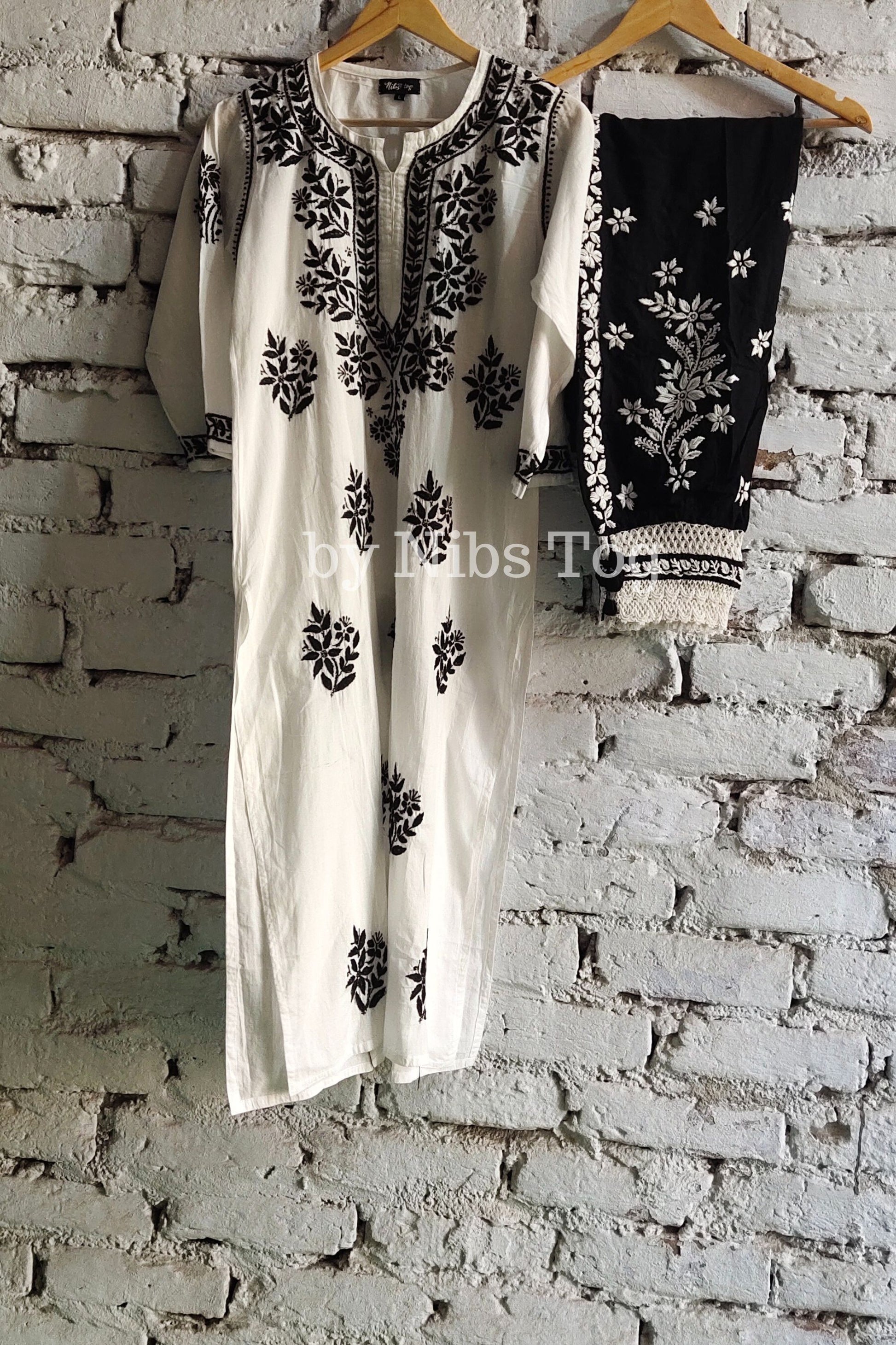 Nibs Tog White & Black Cotton Chikankari Kurta Pant Set