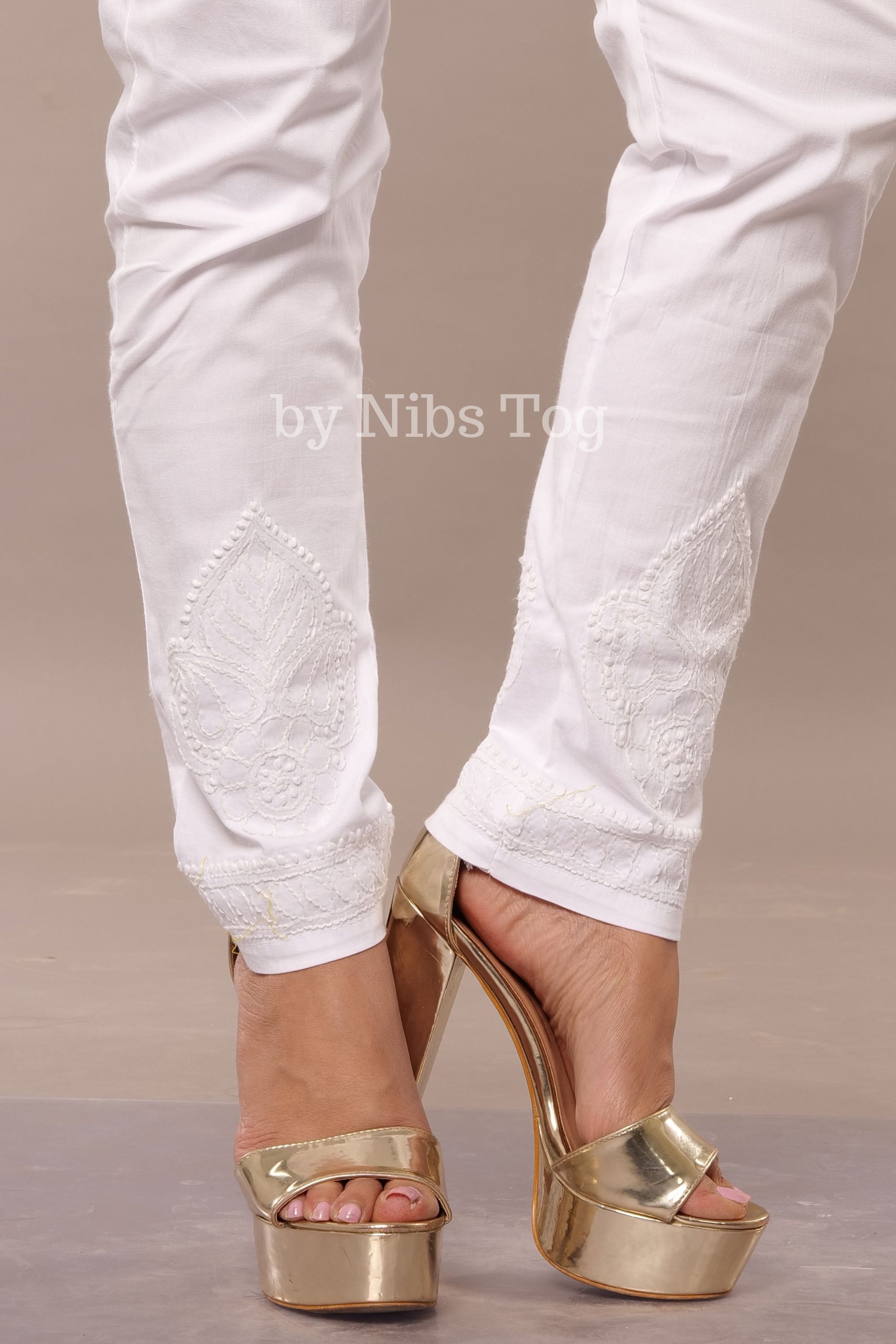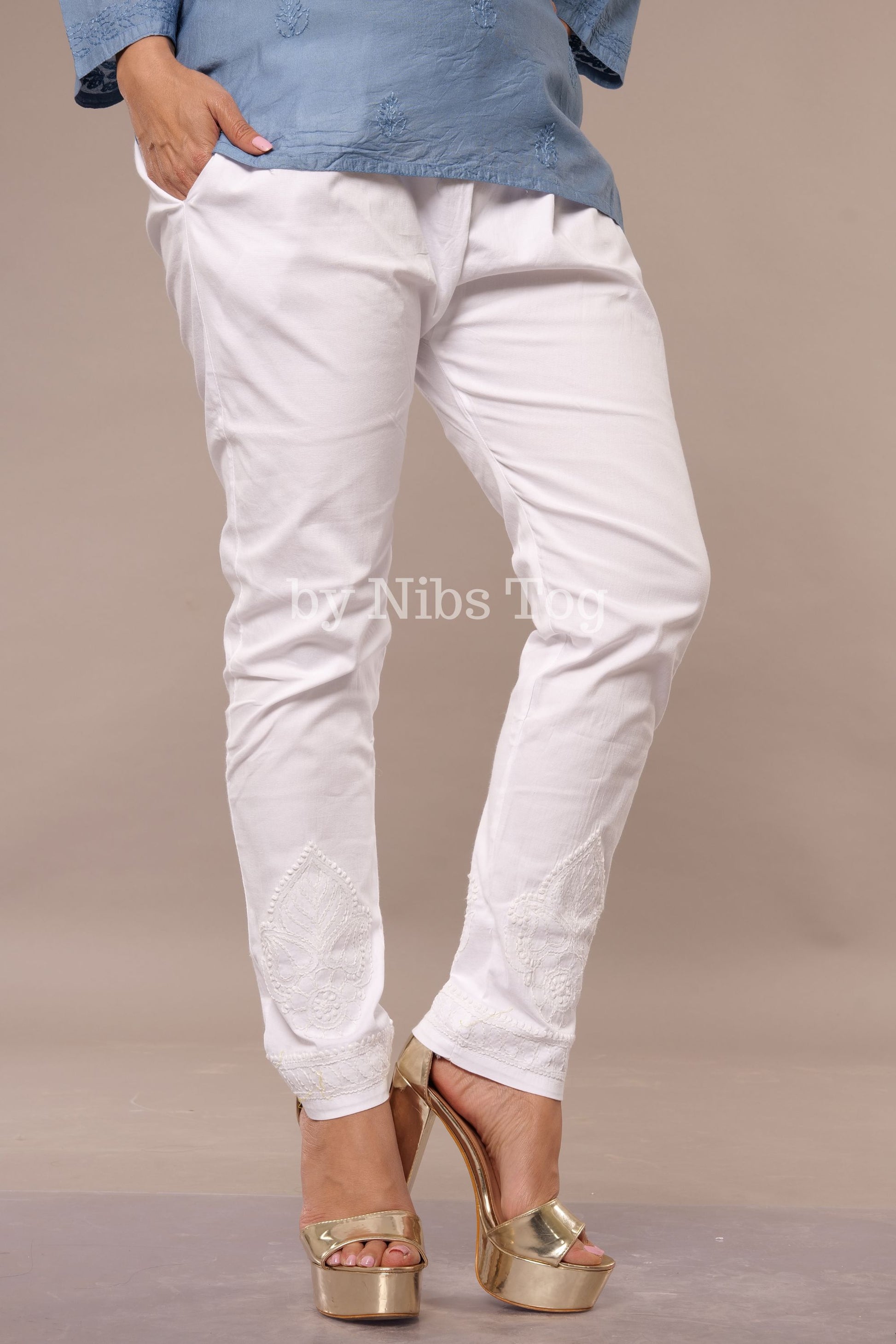 Nibs Tog Lucknowi Chikankari Lycra Cotton Stretchable Pant White